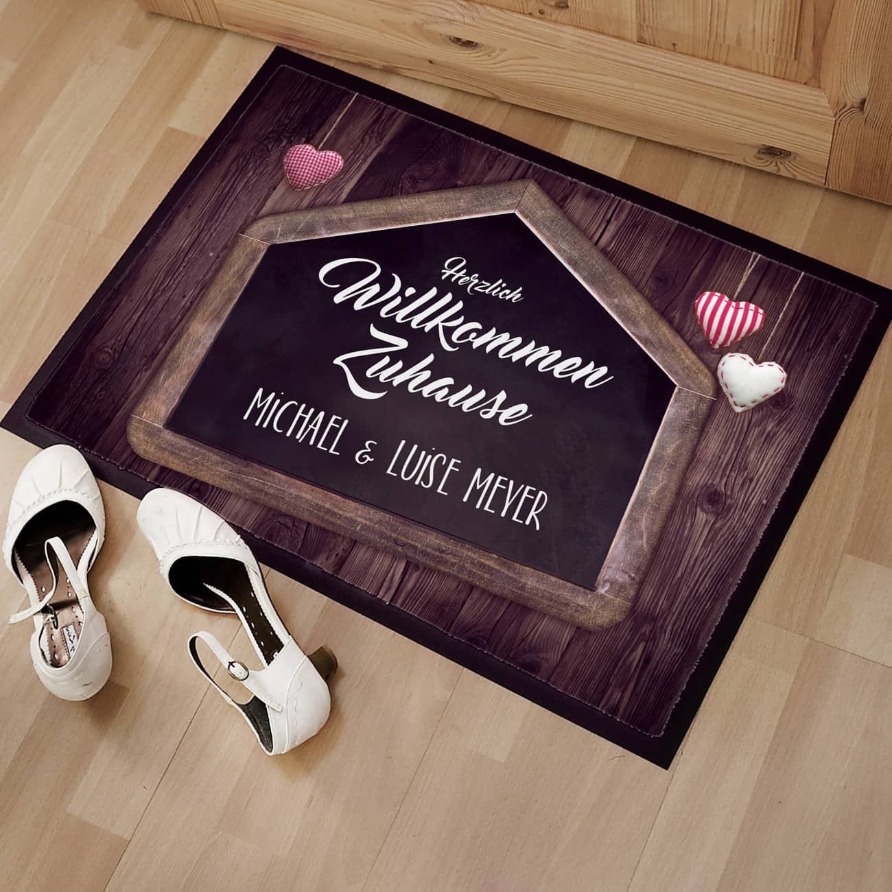 Herzlich Willkommen Zuhause - bedruckte Fußmatte mit Text nach Wunsch