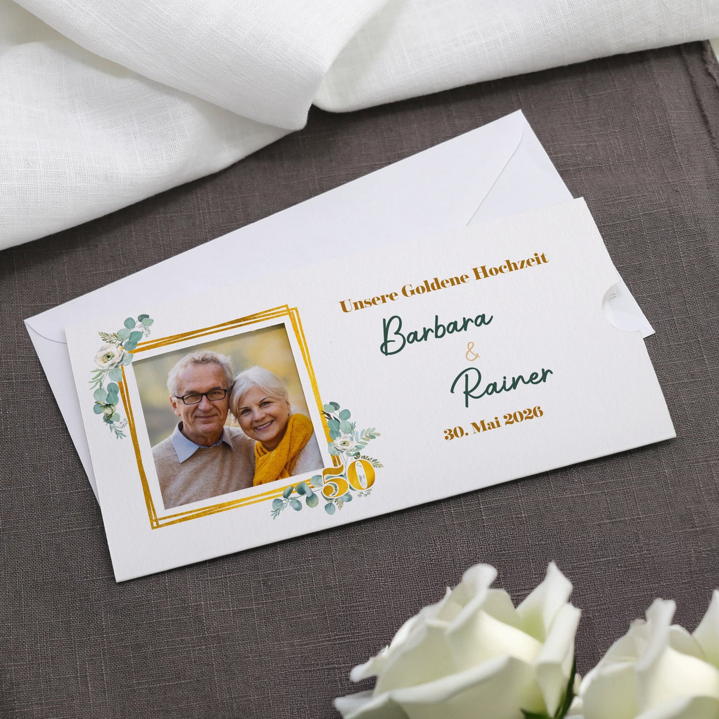 Machen Sie Ihre Goldene Hochzeit zu einem unvergesslichen Ereignis – mit einer Einladung, die Ihre 50 gemeinsamen Jahre würdigt. Jetzt personalisieren & bestellen!