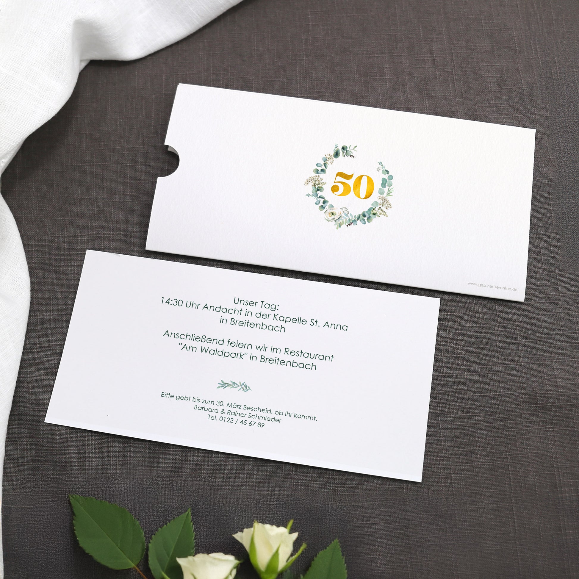Stilvolle Einladungskarte zur Goldenen Hochzeit