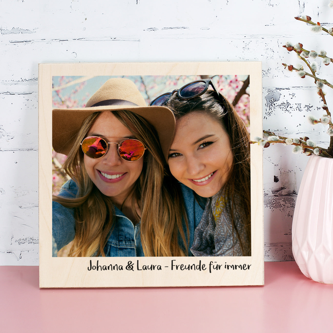 Holzbild mit Ihrem Foto und Wunschtext bedruckt