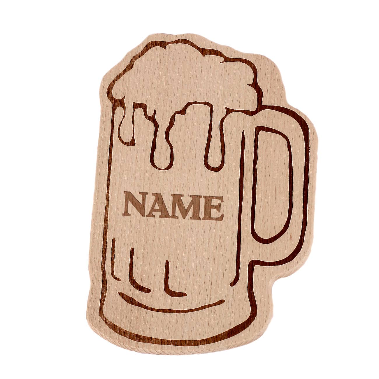 Holzbrettchen Bierkrug mit persönlicher Namensgravur