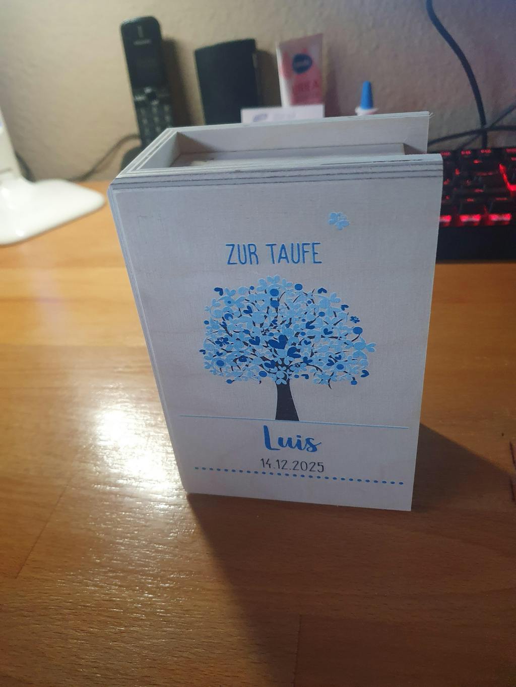 Spardose aus Holz zur Taufe, Kommunion, Konfirmation