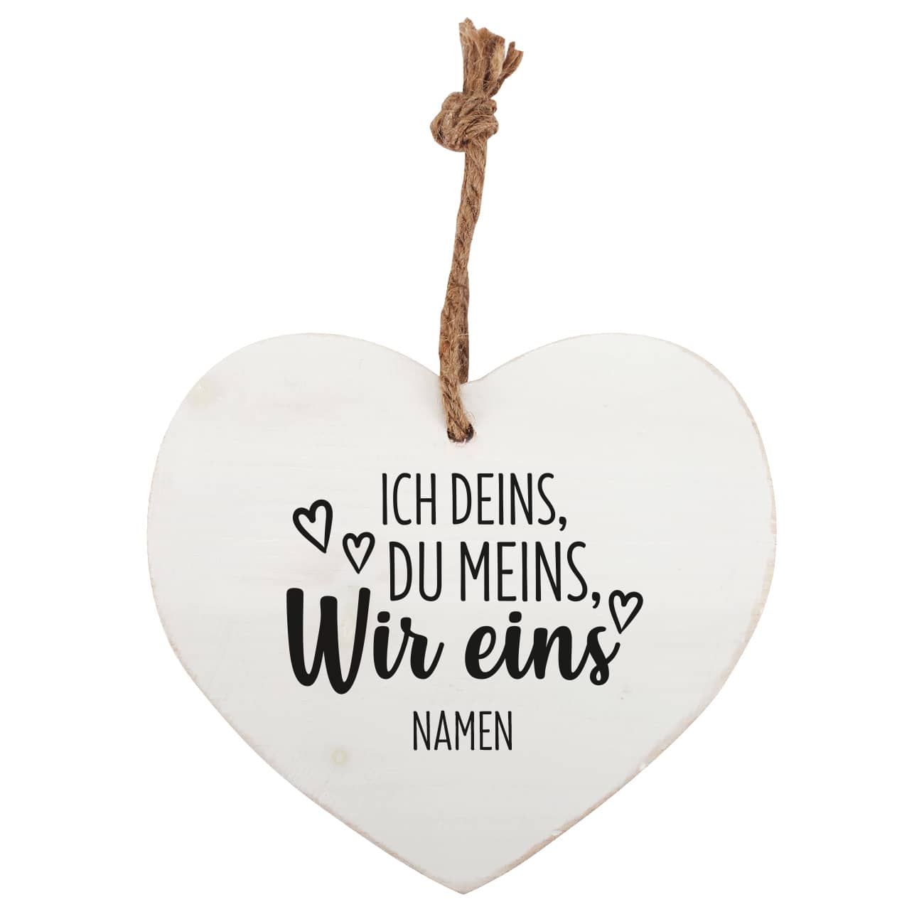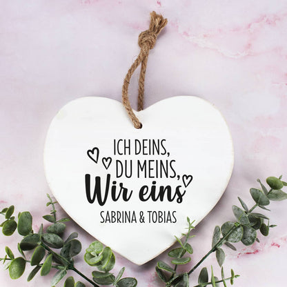 Ich deins, Du meins, Wir eins - Holzherz zum Aufhängen mit Ihren Wunschnamen