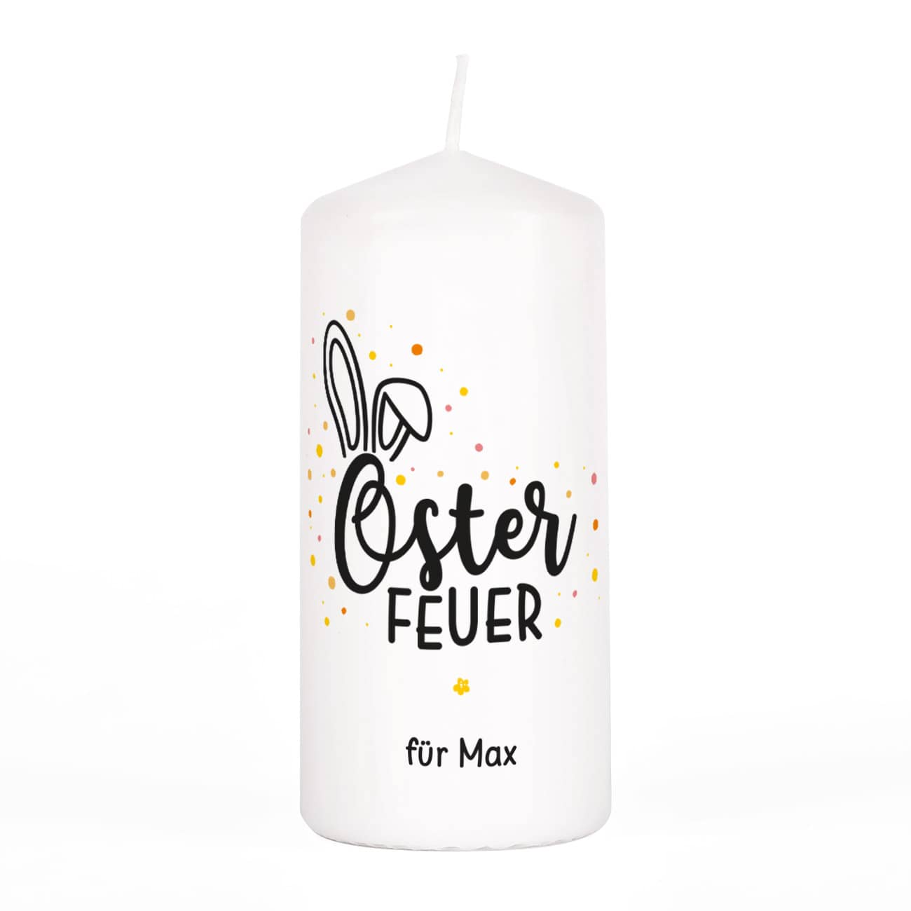 Kerze zu Ostern mit Osterfeuer-Aufdruck und Ihrem Wunschtext