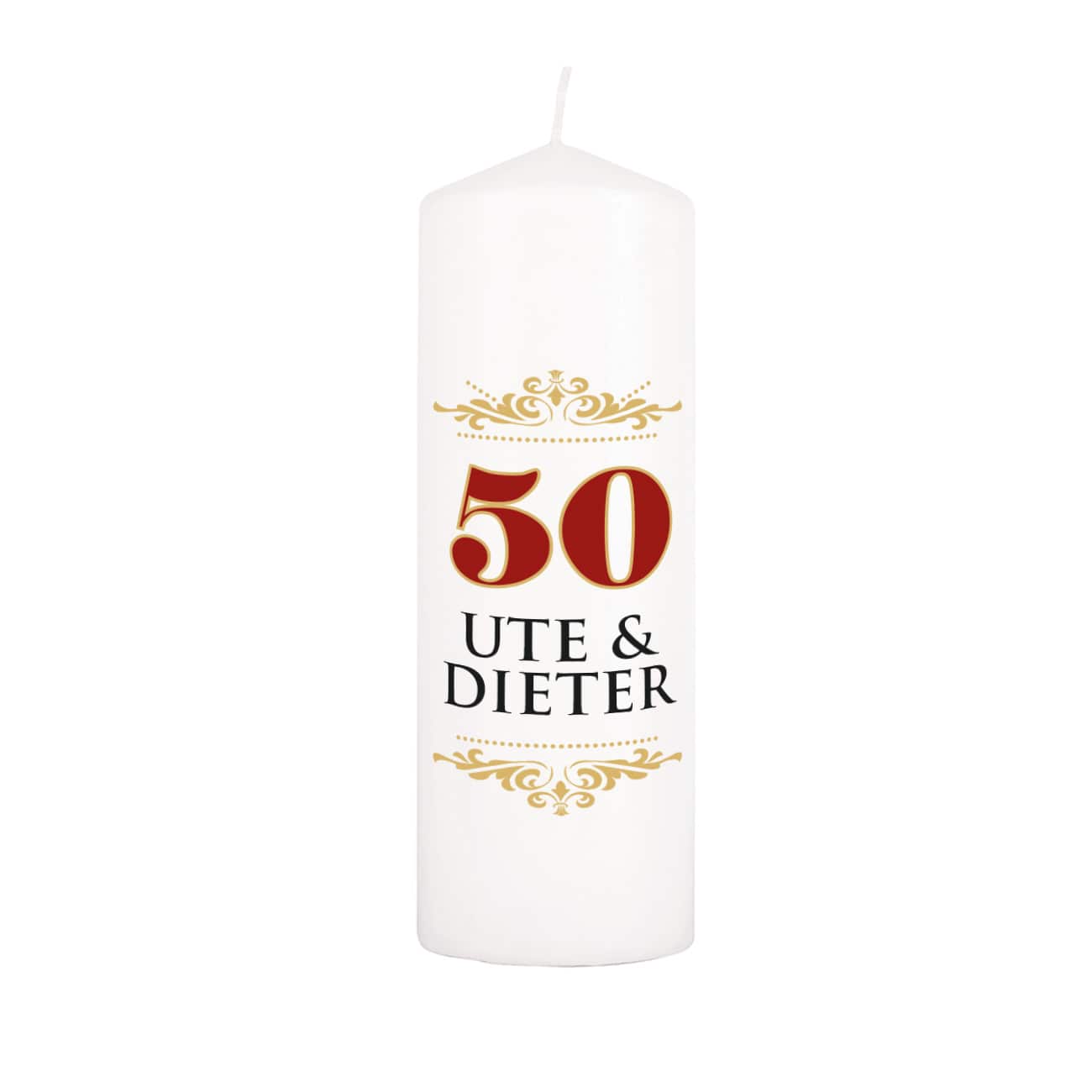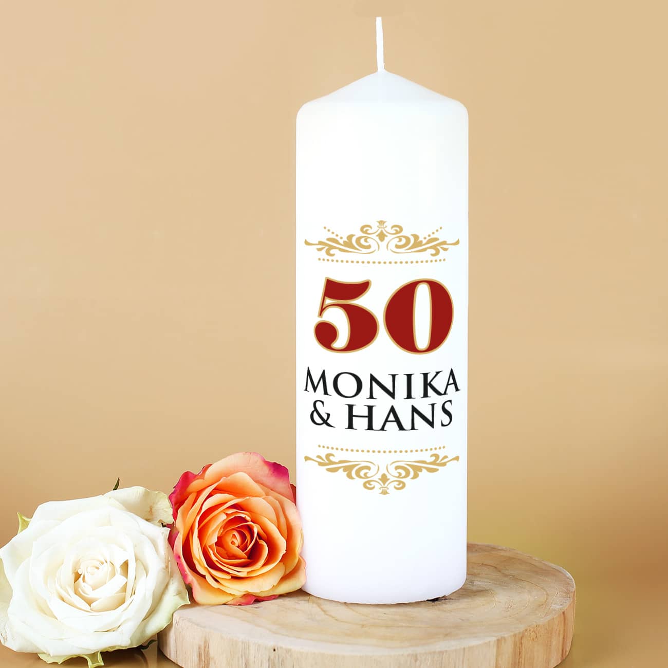 Kerze zur Goldenen Hochzeit mit Namen des Paares