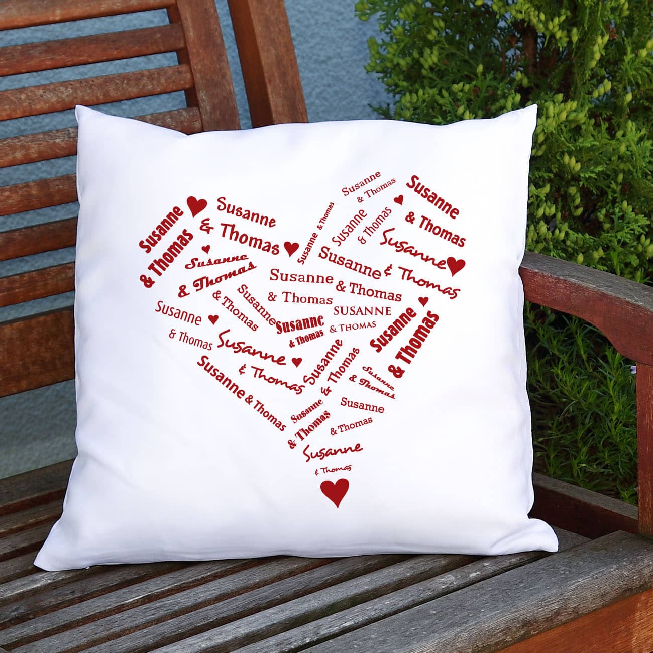Zeigen Sie Ihre Liebe mit diesem superschönen Kuschelkissen mit Herzaufdruck. Das Herz wird aus Ihren beiden Vornamen geformt und macht das Kissen zu einer dekorative Geschenkidee für Ihren Schatz.