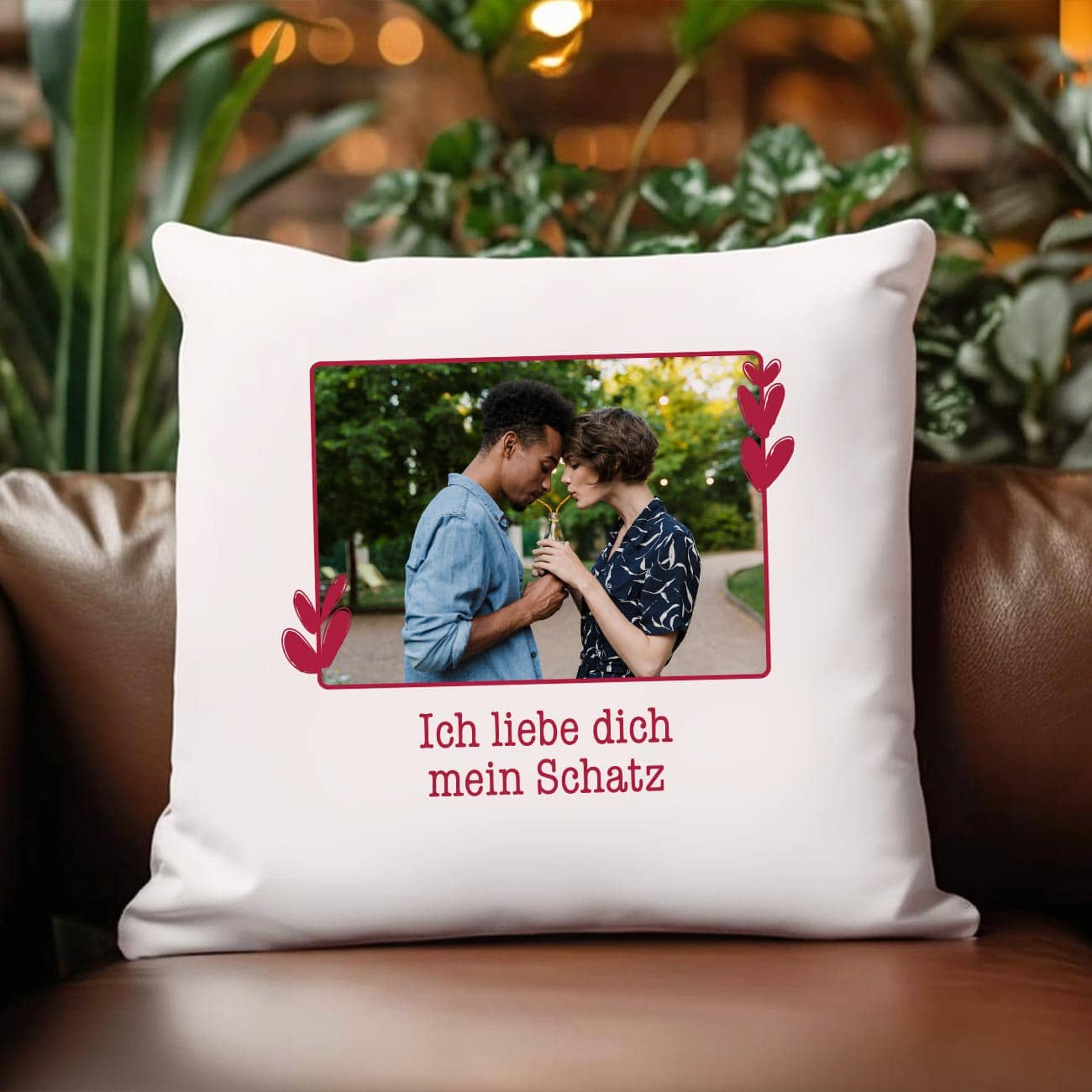 Entdecken Sie unser personalisiertes Kissen mit Foto und individueller Gestaltung, das eine vielseitige Möglichkeit bietet, Ihre Erinnerungen zu verewigen. Unser 40 x 40 cm großes Kissen ist perfekt für eine persönliche Note mit Ihrem ausgewählten Foto und Text gestaltet. Rahmen, Farbe und Schriftart können nach Ihren Vorstellungen individuell angepasst werden. Dieses Kissen ist nicht nur ein liebevolles Geschenk für zahlreiche Anlässe wie Geburtstage, Muttertag, Valentinstag oder eine Hochzeit, sondern auch eine bleibende Erinnerung. Ihr Foto wird groß auf den oberen Teil des Kissens gedruckt, während darunter Ihr persönlicher Text Platz findet. Sie haben die volle Kontrolle bei dem Design des Kissens!