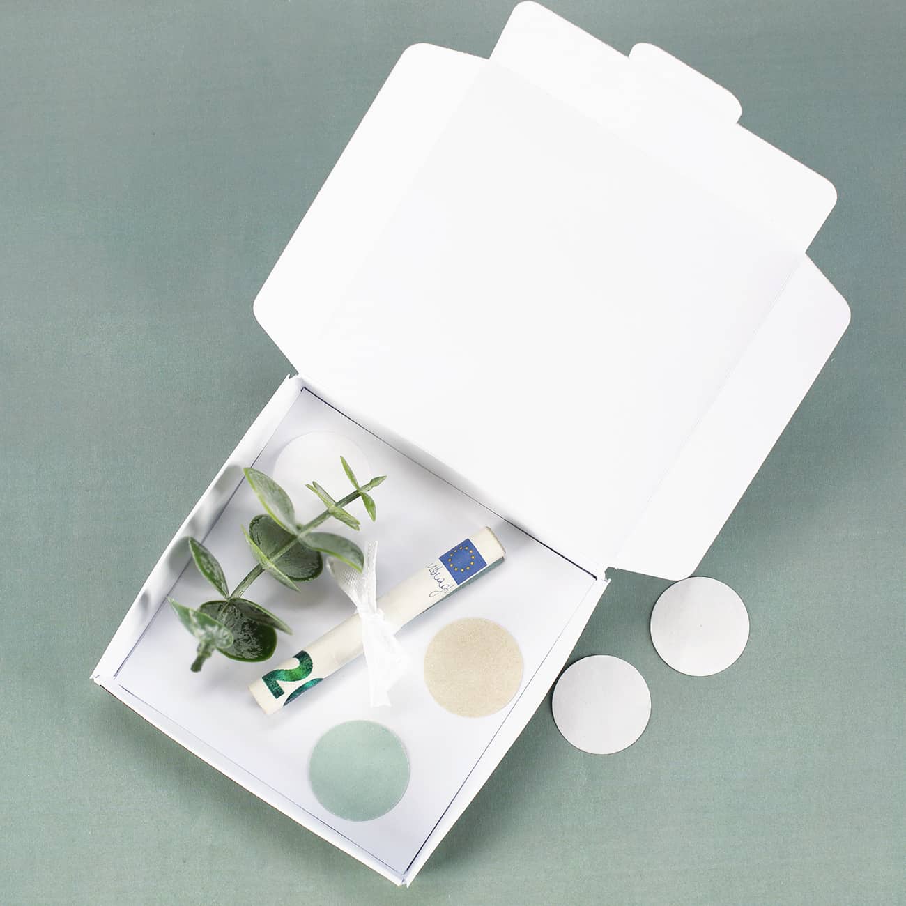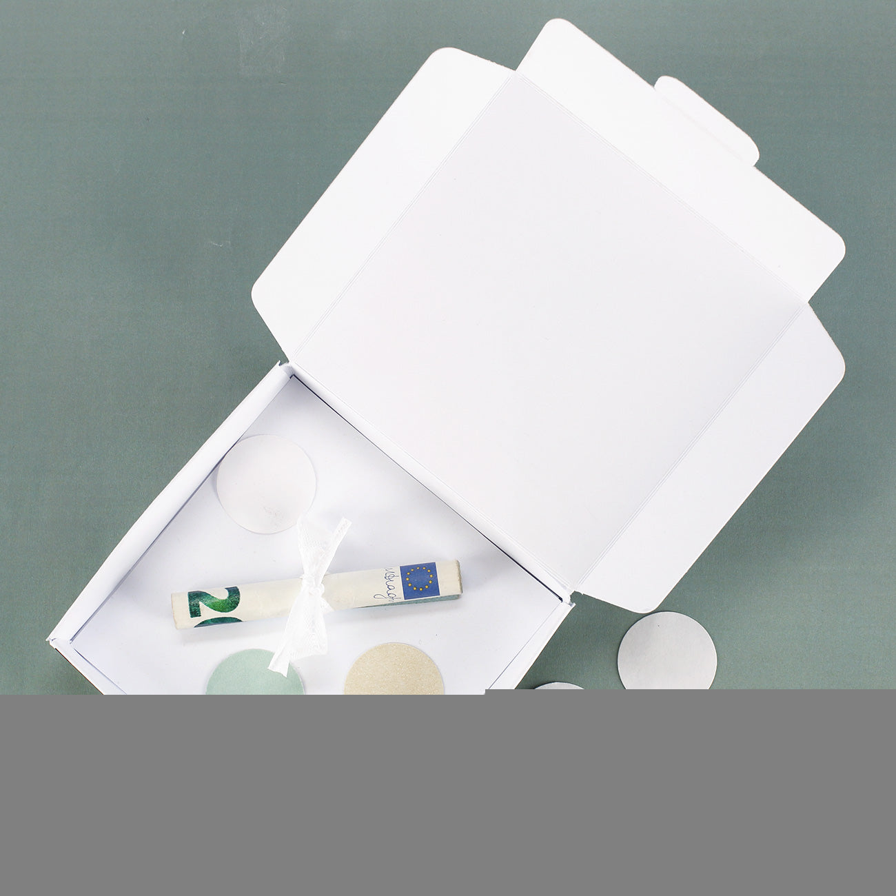 Die kleine Geschenkbox mit den Maßen 10 x 10 x 2 cm ist einfach ideal für Geldgeschenke, Gutscheine, Schmuck und anderen kleine Geschenke, die Sie raffiniert überreichen möchten. Sie haben die Auswahl aus verschiedenen Designs und Motiven, so dass für jeden Anlass die passende Papierschachtel parat ist. Mit dabei sind Designs zum Muttertag, Vatertag, Valentinstag, Geburtstag, als Dankeschön, zur Geburt für Mädchen und Jungen und zu Ostern und Weihnachten. Somit können Sie Ihre kleinen Präsente das ganze Jahr über schick in der kleinen Geschenkbox verpacken. Sie können sich Inspirationen für Ihre Geldgeschenke und Gutscheine aus unseren Produktbildern entnehmen.