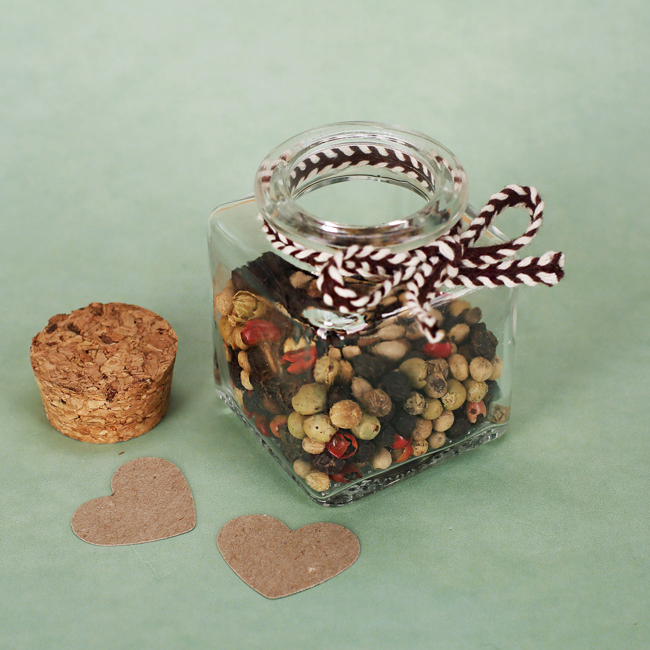 Diese niedliche Glasdose in Form eines Würfels eignet sich bestens als Gastgeschenk für Ihre Gäste. Egal ob Hochzeit, Silberhochzeit, Goldhochzeit oder zum runden Geburtstag, diese kleine Aufmerksamkeit wird begeistern. Das Gläschen wird mit einem Korkdeckel geliefert. Sie können es nach Belieben und passend zum Anlass füllen. In unseren Produktfotos zeigen wir Ihnen einige Beispiele auf, wie Sie das Geschenk gestalten können. Ob mit Kräutern, Konfetti oder kleinen Süßigkeiten, lassen Sie Ihrer Fantasie freien Lauf. Versehen mit einem gebastelten Namensschild weiß zudem noch jeder Gast wo er seinen Platz findet.
