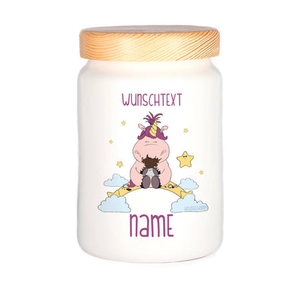 Abgerundet wird dieses tolle Geschenk mit Ihren personalisierten Daten. Die schlichte aber elegante Keramikdose wird mit dem Knuddelhorn Motiv, einem Text und Name nach Wunsch bedruckt. Für Ihren Wunschtext stehen Ihnen 30 Zeichen zur Verfügung. Werden Sie kreativ und lassen Sie sich was Witziges und Schönes einfallen. Geben Sie einfach Ihre Wunschdaten an und Sie haben im Handumdrehen ein schönes Geschenk für alle Einhornfans. Um die Keramikdose luftdicht zu verschließen ist in dem Holzdeckel ein Silikonring befestigt.