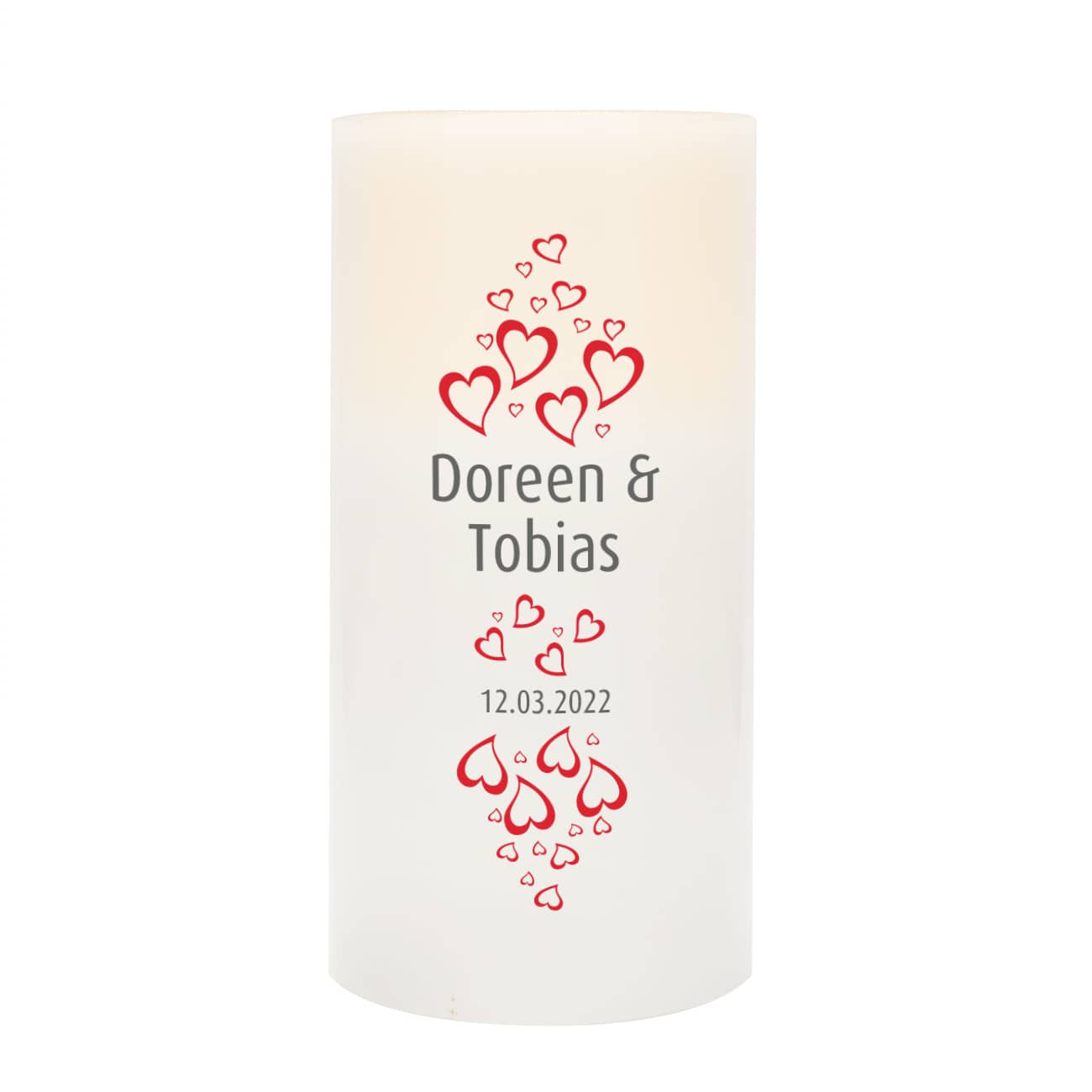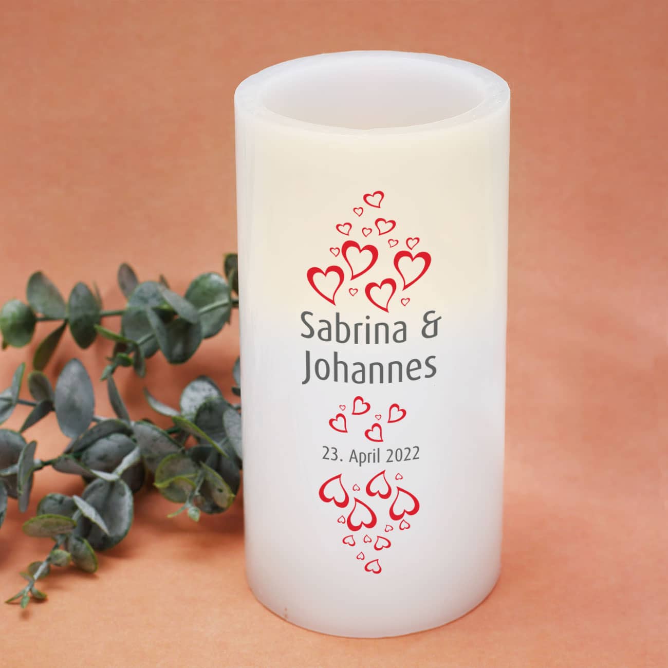 LED Kerze mit Herzen, Namen und Datum bedruckt