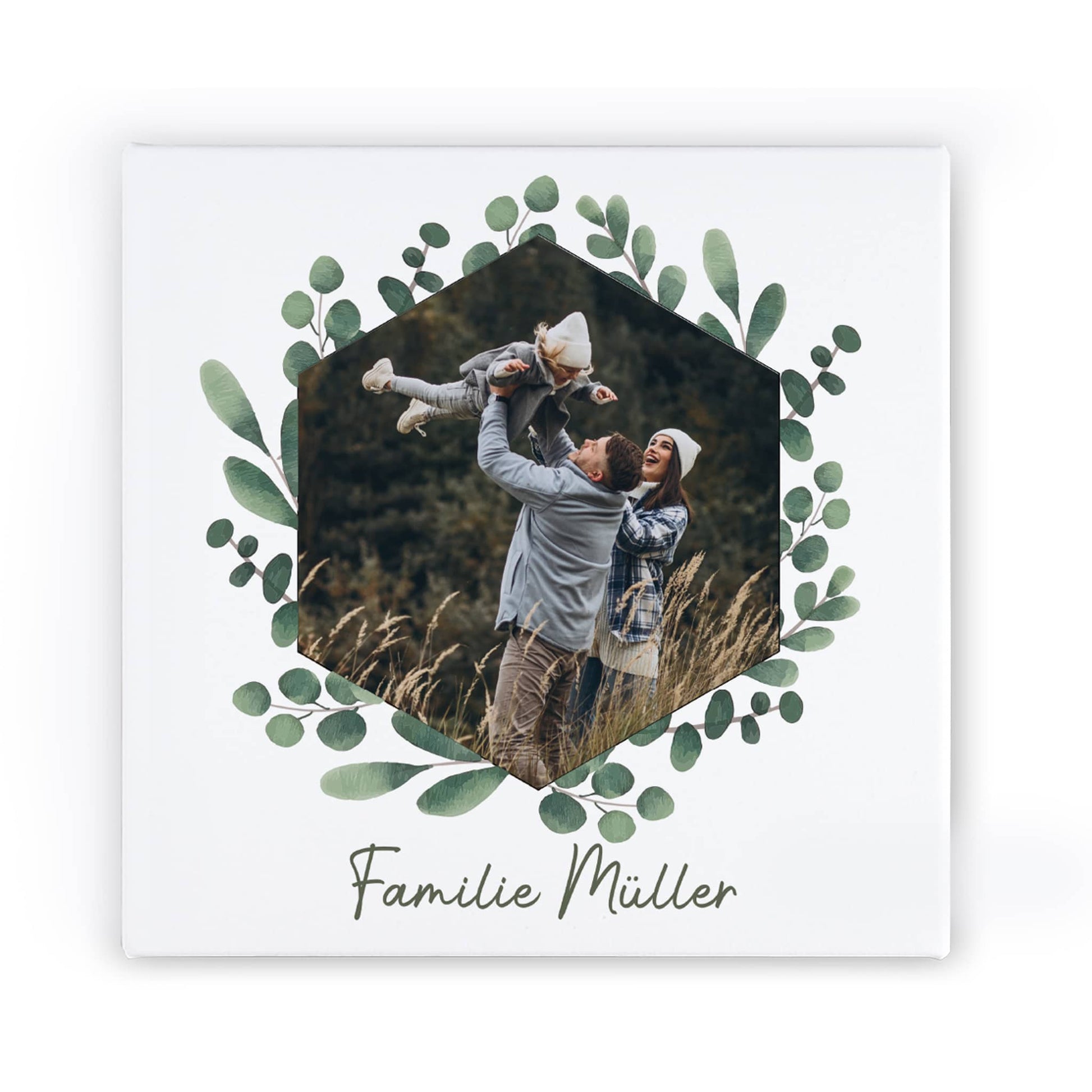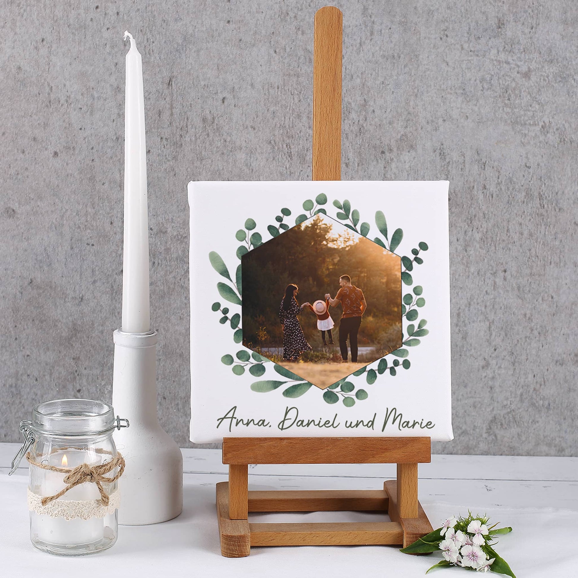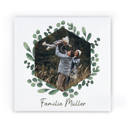Leinwand 20x20cm mit Familienfoto und Eukalyptuskranz