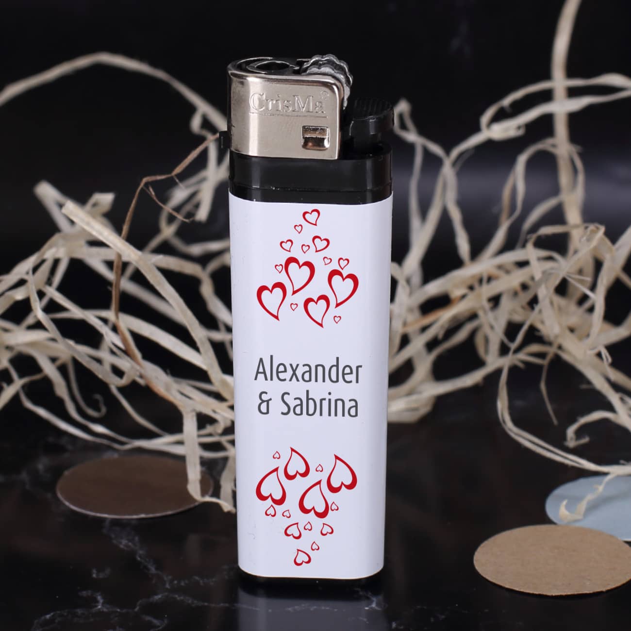 Liebes-Feuerzeug zur Hochzeit mit romantischen Aufkleber