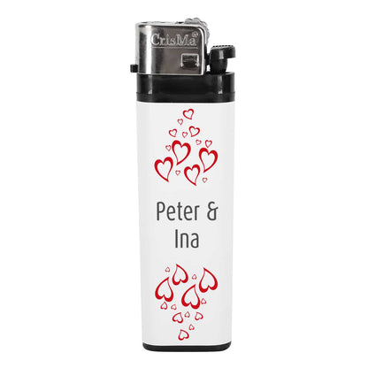 Feuerzeug mit Herzen und Ihren Wunschnamen beklebt