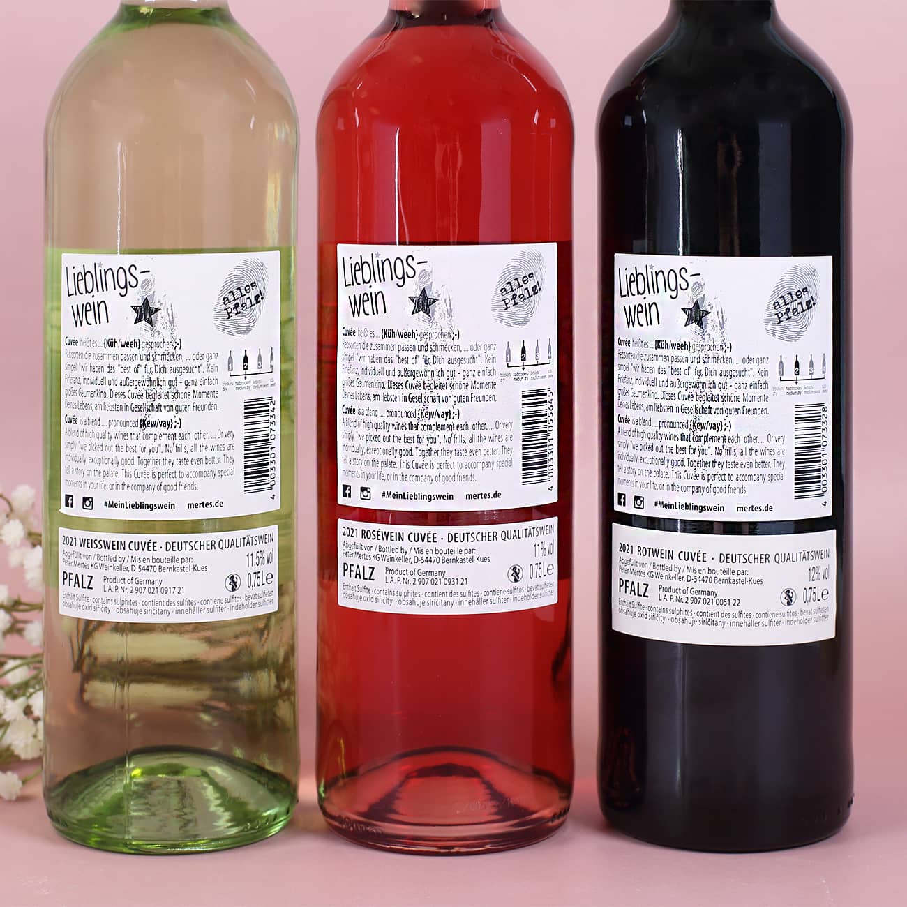 Ausgewählt werden kann aus einem Rosé-, Weiß- oder Rotwein - wählen Sie ganz nach dem Geschmack Ihrer Mama aus. Nachdem der Wein zum Muttertag leer ist, weiß man meist nichts mehr mit der Flasche anzufangen. Bei so einer persönlichen Flasche wäre das allerdings sehr schade, da man die Erinnerung an so ein tolles Geschenk behalten möchte. Wandeln Sie die Flasche doch einfach zu einem schicken Dekoobjekt um, indem Sie sie mit Dekoartikeln füllen! Wie wäre es mit einer feinen Lichterkette mit Fairy Lights, um die Flasche als Lichtquelle im Wohnraum zu verwenden? Oder füllen Sie die Flasche mit Vogelsand und Muscheln aus einem gemeinsamen Urlaub. Hier sind Ihnen absolut keine Grenzen gesetzt und Sie können richtig kreativ werden.