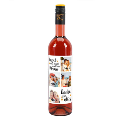 Der Muttertag kommt jedes Jahr plötzlich und meist fallen einem dann nicht mehr persönliche Geschenkideen ein. Diese Flasche Wein ist da doch eine schöne unkomplizierte Idee, die dennoch einen persönlichen Charakter hat, denn Sie ist mit vier Fotos Ihrer Wahl bedruckt. Ihre Mutter ist für Sie das aller Beste, aber Sie wissen nicht wie sie das ausdrücken sollen und wie Sie Ihre Mutter wertschätzen können? Dann bringen Sie ihr beim nächsten Besuch zum Muttertag, Geburtstag oder einfach nur zum Dinner dieses schöne Präsent oder Geburtstagsgeschenk mit. Beim gemeinsamen Trinken dieses leckeren Weines wird das Geschenk noch persönlicher, aber ob Ihre Mutter ein Glas von diesem edlen Tropfen entbehren kann, ist eine andere Frage. So ein durchdacht schönes Geschenk kriegt man nicht alle Tage, deshalb wird es noch lange in Erinnerung bleiben!