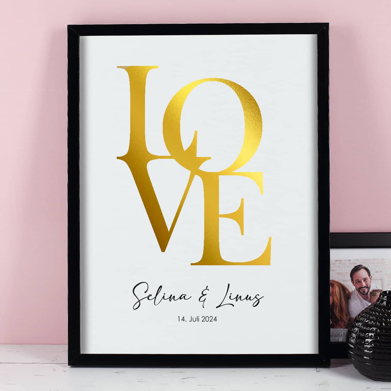 LOVE vergoldetes Wandbild mit Namen & Datum für Paare, 40x30cm