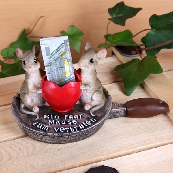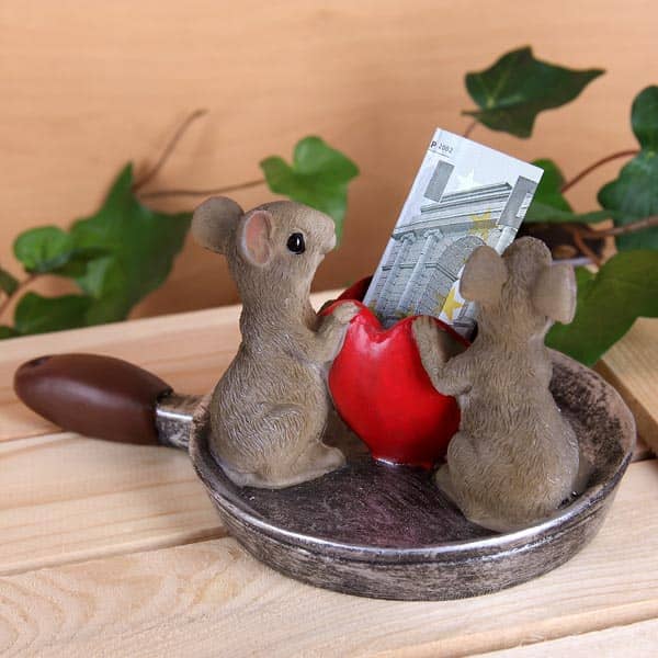 Diese Pfanne mit zwei Mäusen und einem kleinen Herz ist eine super Idee, um Geld schön und ausgefallen zu verschenken. Verschenken Sie dieses originelle Geldgeschenk beispielsweise zur Hochzeit.