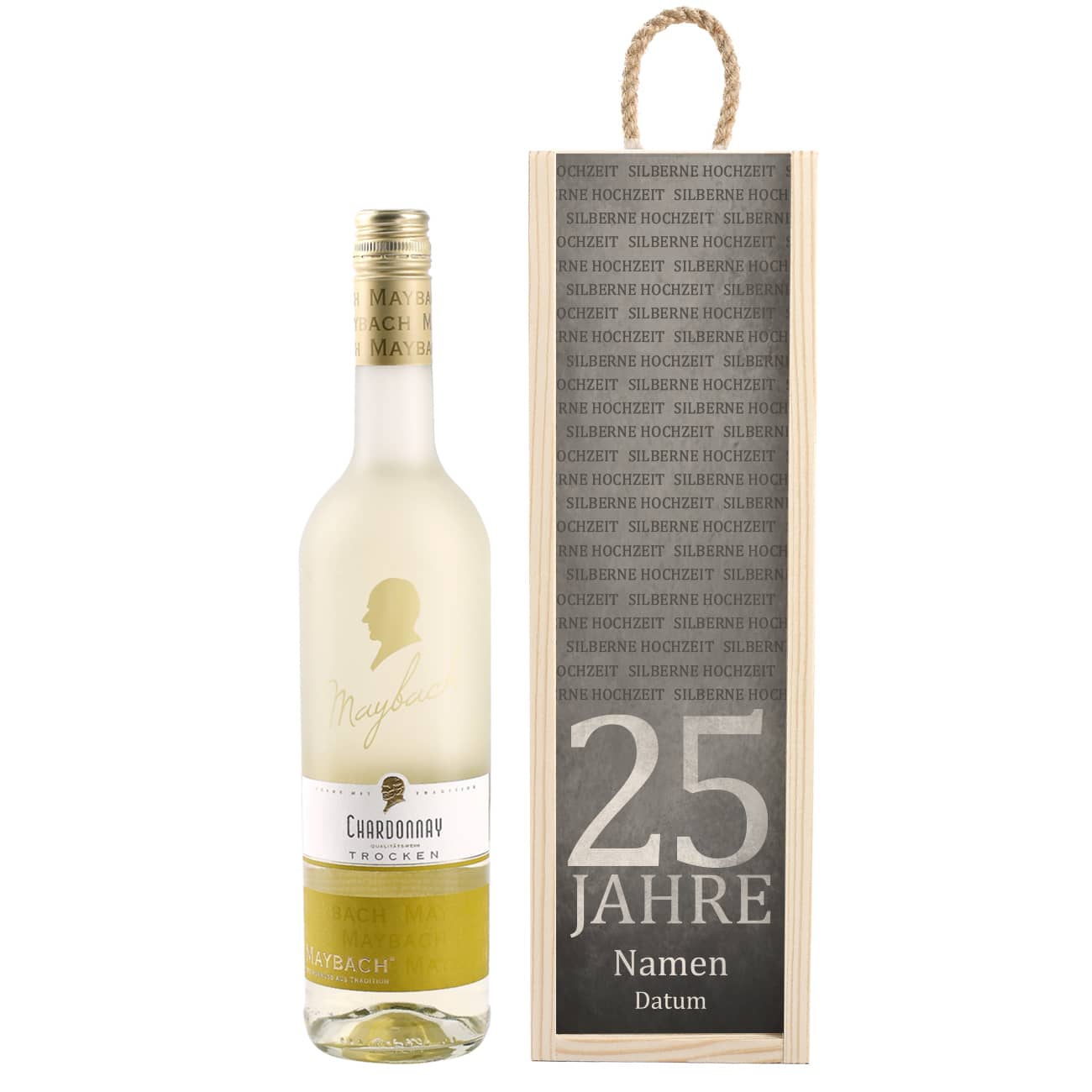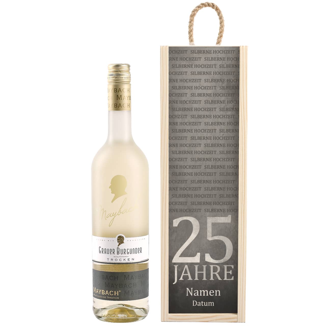 Maybach Weißwein zur Silberhochzeit mit bedruckter Holzbox