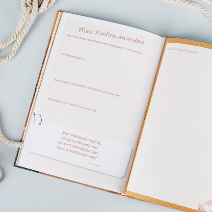 Vom Antrag der Patenschaft über deine Taufe bis hin zum Fest deiner Konfirmation enthält es viele schöne Eindrücke und Erinnerungen an deine Zeit des Heranwachsens, an meine Zeit der Patenschaft, an unsere gemeinsamen Erlebnisse und Momente und natürlich an die Feier deiner Konfirmation.
