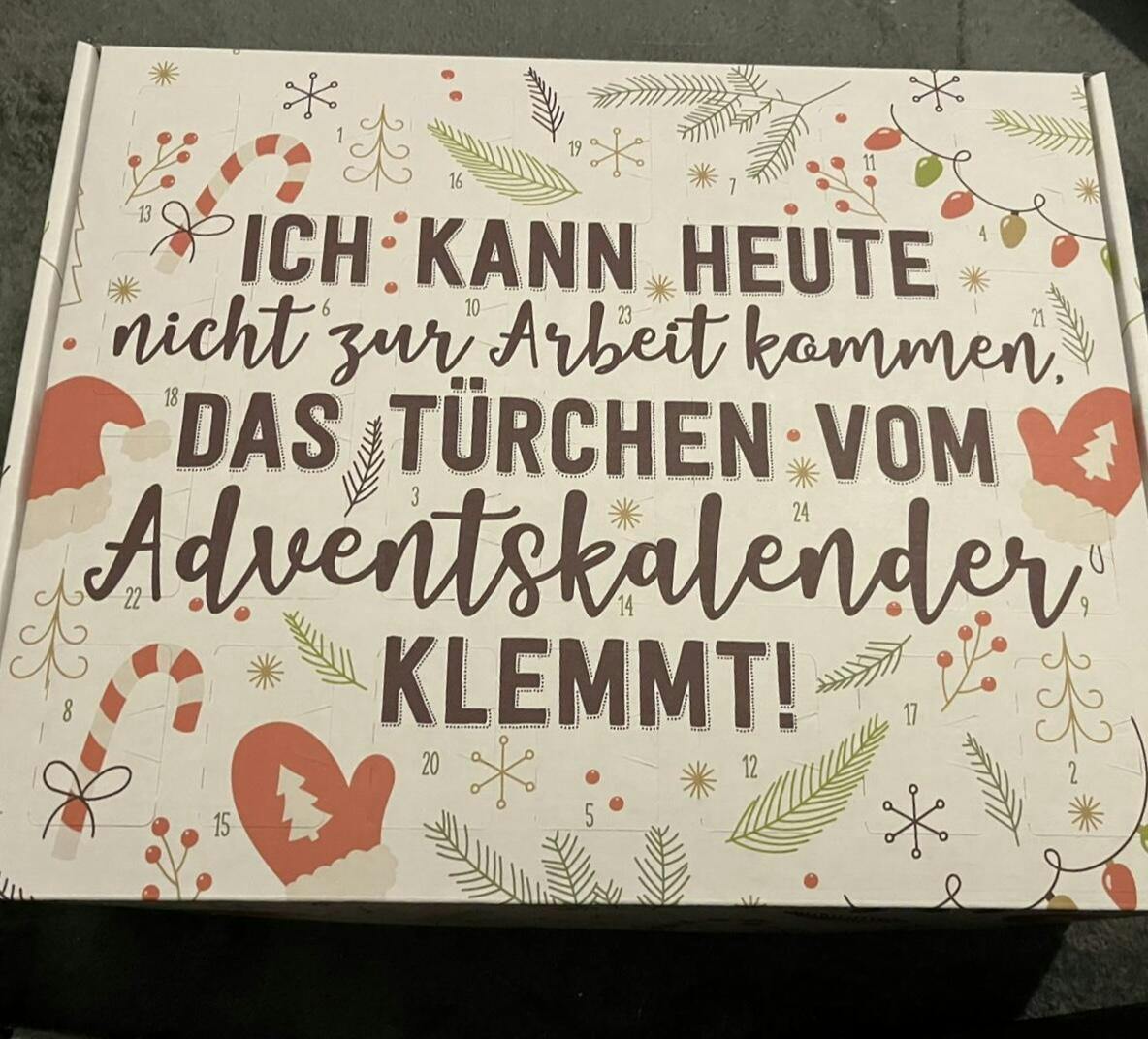 Dieser Adventskalender ist die perfekte Geschenkidee für Erwachsene, die die Adventszeit mit Humor genießen möchten. Mit dem augenzwinkernden Spruch „Ich kann heute nicht zur Arbeit kommen, das Türchen vom Adventskalender klemmt!“ sorgt er garantiert für Lacher im Büro, im Freundeskreis oder zu Hause. Befüllen Sie den Kalender individuell mit kleinen Überraschungen und machen Sie die Vorweihnachtszeit zu etwas ganz Besonderem.