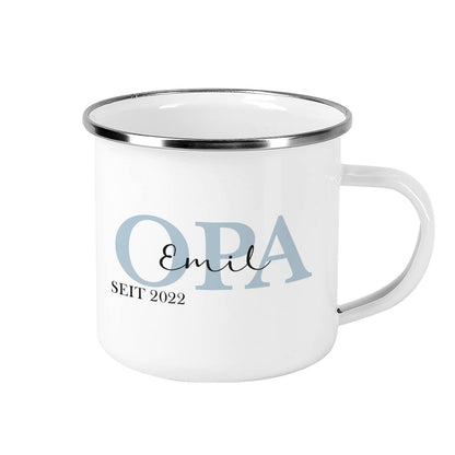 Bedruckte Metalltasse mit "Opa seit" Motiv und Ihrem Wunschtext