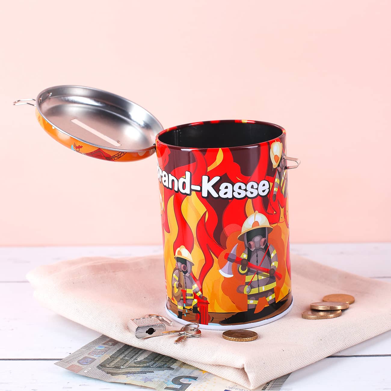 Wird die Spardose mit etwas Inhalt gefüllt, eignet sie sich als Geschenk für tatsächlich vom Brand betroffene Personen oder auch nur als Spaß für solche, deren Finanzen einen brenzligen Eindruck machen.