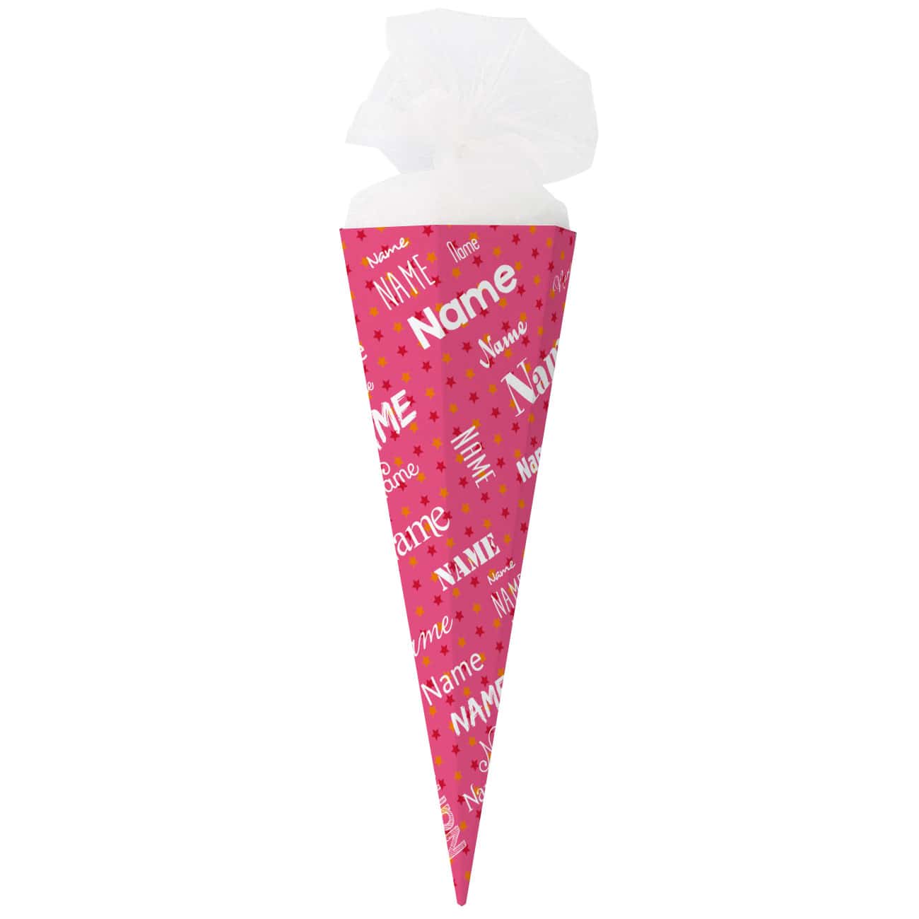 Zuckertüte in rosa mit Namen in verschiedenen Schriftarten