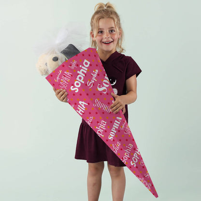 Rosa Schultüte für Mädchen mit Name in verschiedenen Schriftarten