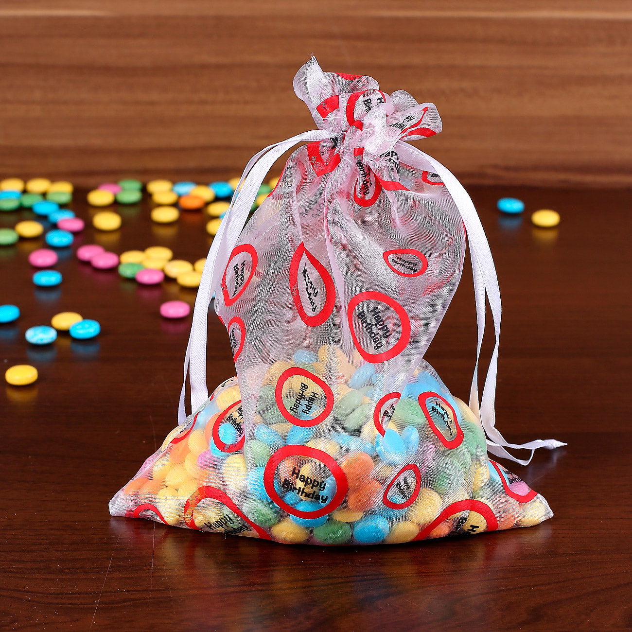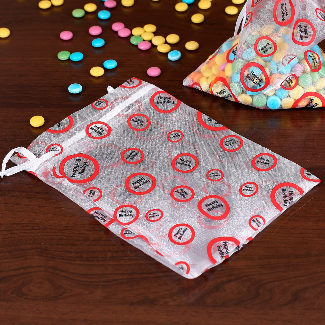 Mit diesem schönen Organzabeutel wird jedes Geschenk zu einem absoluten Highlight werden. Egal ob ein Parfüm oder ein neues Handy, der Beutel bietet genügend Platz. Damit der Inhalt auch sicher verpackt ist, kann der Beutel an der Öffnung mit einem weißen Band zugezogen werden. Verziert ist der schöne Organzabeutel mit vielen Kreisen in unterschiedlichen Größen und der Aufschrift Happy Birthday darin. Die Kreise sind im Design eines Verkehrsschildes gestaltet, wodurch der Beutel zu einem wahren Blickfang wird.