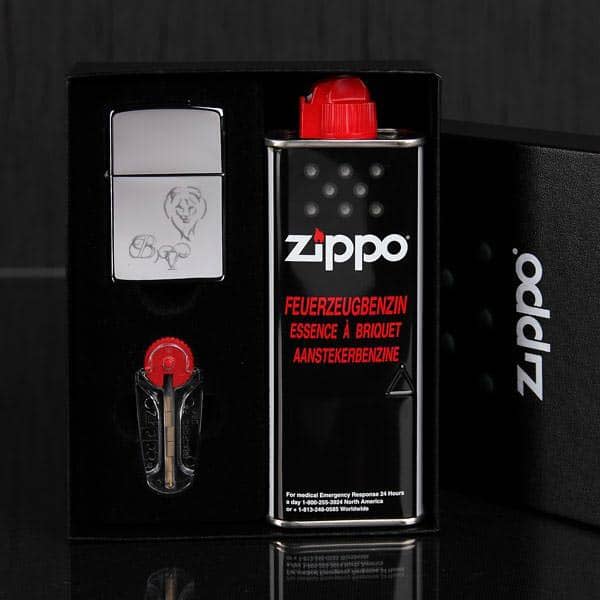 Es handelt sich hier um ein original Zippo Geschenkset, bestehend aus dem Feuerzeug, original Zippo Benzin und Feuersteinen. Das Feuerzeug kommt in einer originellen Geschenkverpackung daher, die Sie zum Schutz und zur Präsentation des Feuerzeuges nutzen können. Das Feuerzeug hat eine verchromte, glatte Oberfläche.