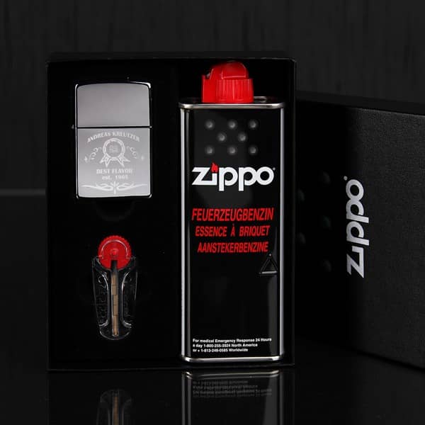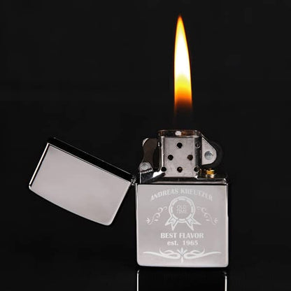 Wir veredeln dieses hochwertige Zippo Feuerzeug mit unserem Best Flavor Motiv und gravieren Ihre Angaben auf das Feuerzeug. Dazu müssen Sie uns nur Ihren Wunschnamen und das Geburtsjahr mitteilen. Dadurch wird es zu einem Unikat.