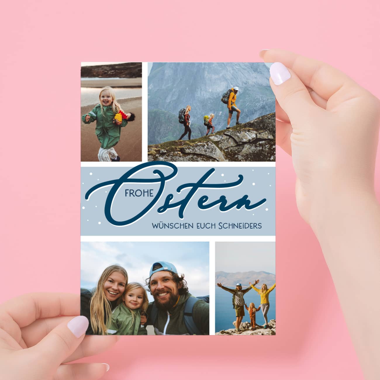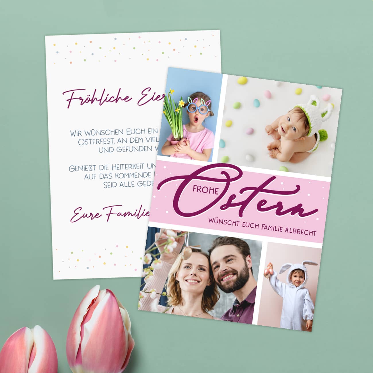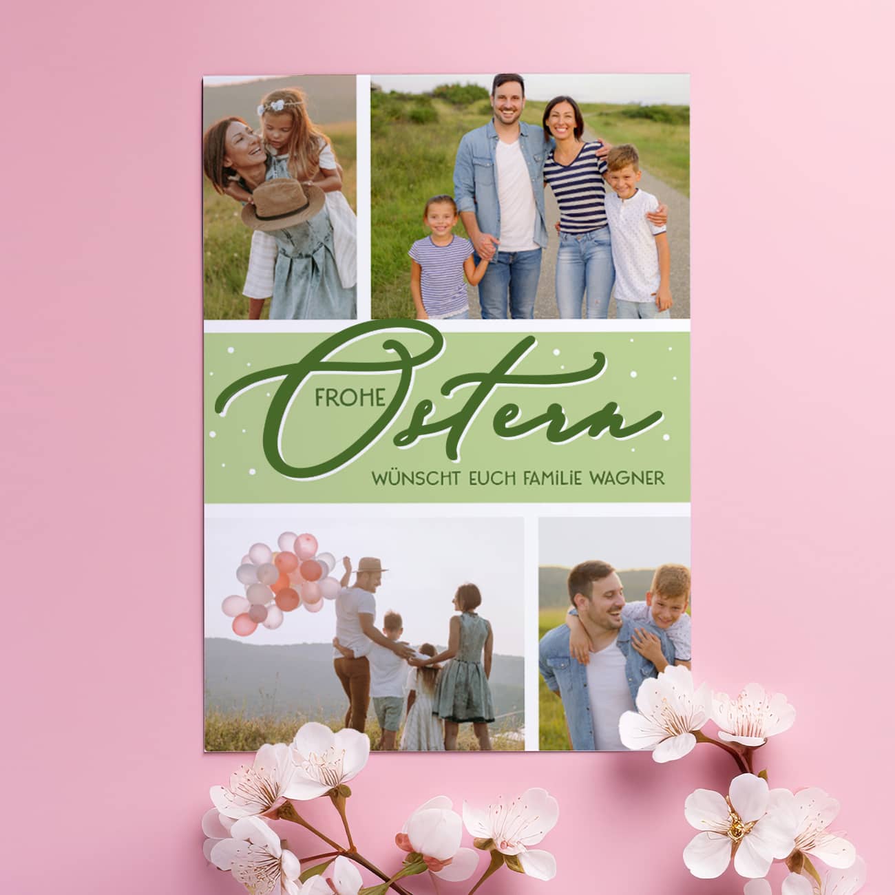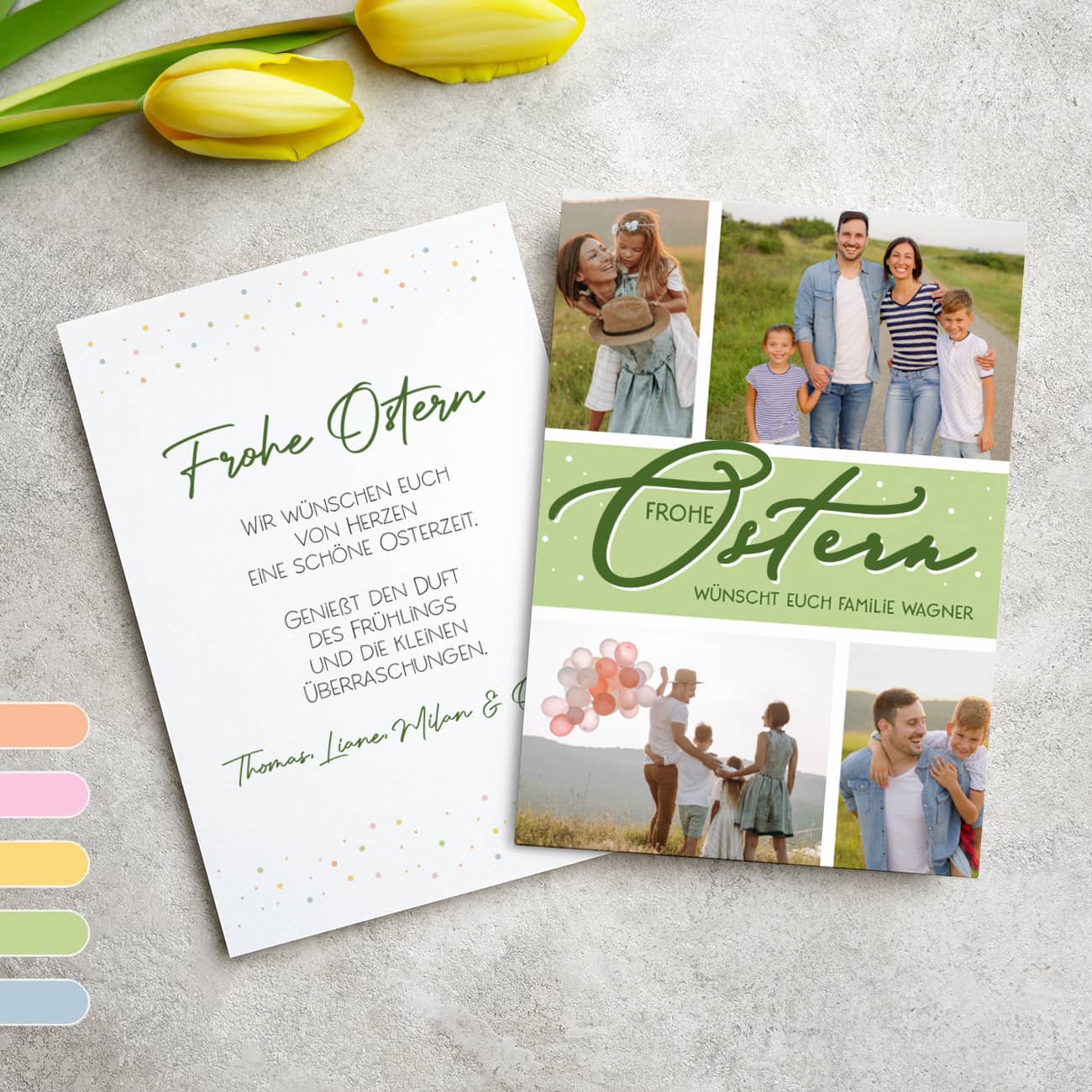 Osterkarte mit Fotocollage, Ihrem Text und Farbauswahl