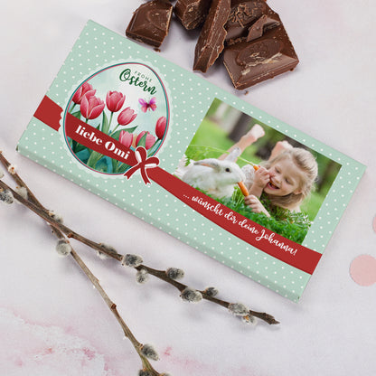 Osterschokolade mit Foto, Wunschtext & Name | Tulpenmotiv