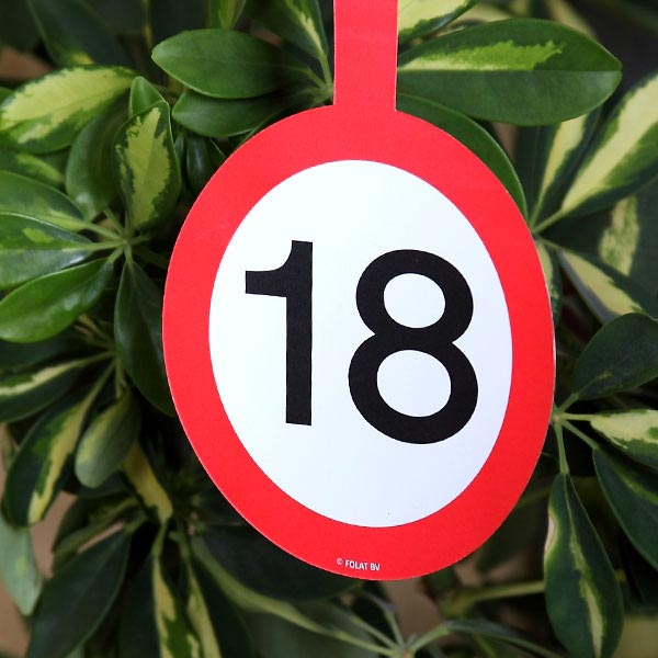 Benötigen Sie noch tolle Dekorationsideen für Ihren eigenen 18.Geburtstag oder für Freunde? Dann finden Sie hier eine tolle Idee die Gast und Gastgeber in Partylaune versetzen wird. Die Partygirlande mit insgesamt 12 Verkehrszeichen wird Ihrer Party das gewisse etwas geben. Die einzelnen Verkehrszeichen haben einen weißen Hintergrund und eine rote dicke Umrandung. Mittig befindet sich eine 18 in jedem Verkehrszeichen. Sie sind an einem verstärkten Seil befestigt, welches mit Rot/weißem Papier verkleidet ist.