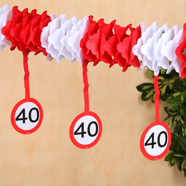 Wie wäre es einmal mit einer knalligen Überraschungsparty zum 40.Geburtstag? Da ist die Dekoration natürlich ein wichtiger Punkt der nicht vergessen werden darf. Passend dazu haben wir knallige Deko - Girlanden mit Verkehrszeichenmotiv für Sie.