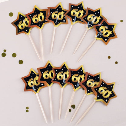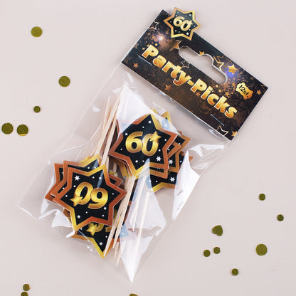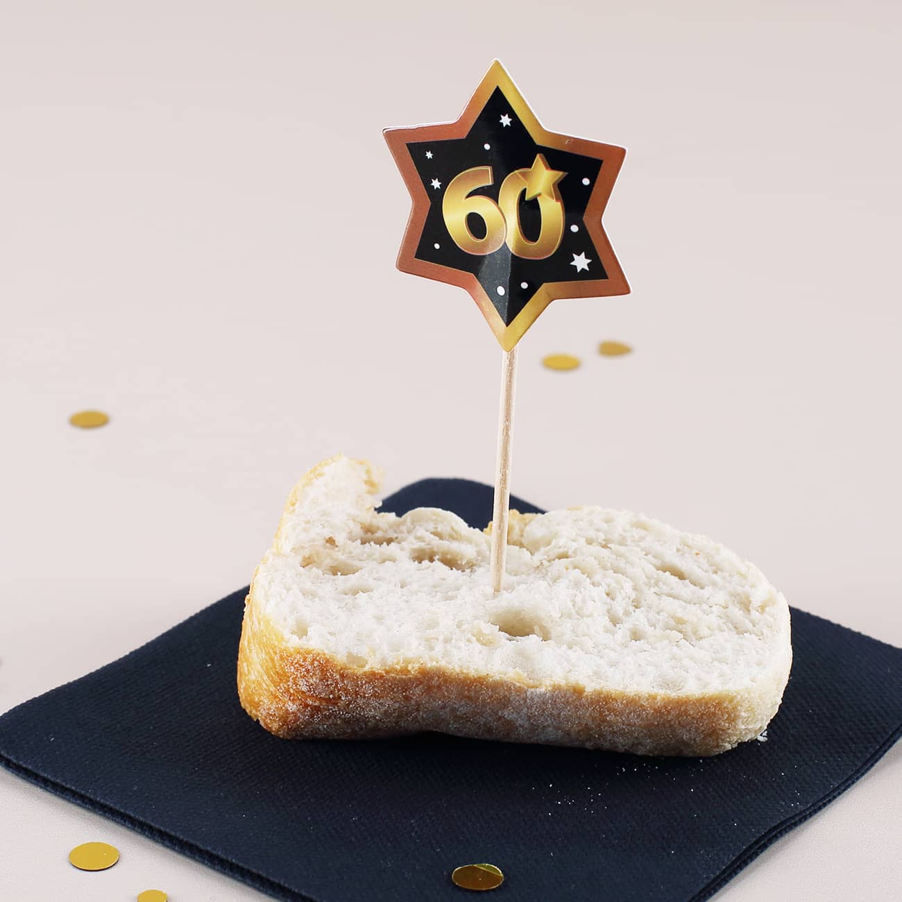 Diese schönen Party-Picks sind die perfekte Dekoration für den 60. Geburtstag. Dekorieren Sie damit den Kuchen oder andere kleine Snacks auf Ihrem Buffet und die Tafel wird strahlen. Sterne und die Zahl 60 stehen hier im Vordergrund und werden dem Geburtstagskind mit Sicherheit gefallen.