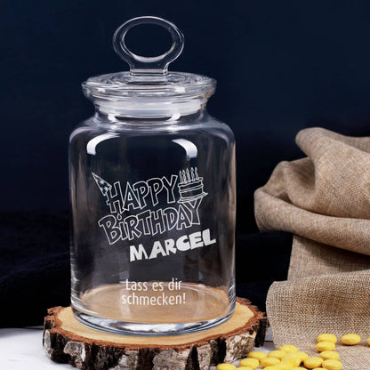 Persönliche Glasdose zum Geburtstag mit Namen
