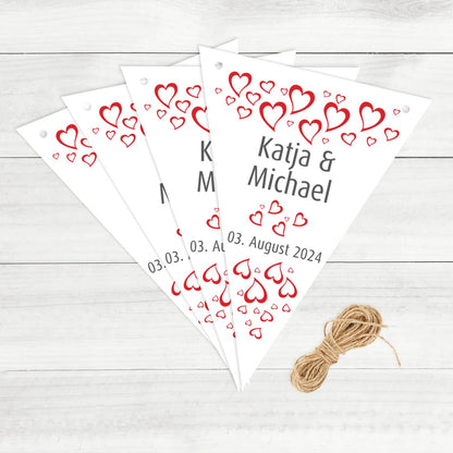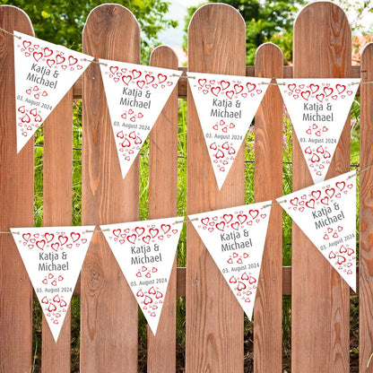 Persönliche Herzchen Girlande mit Namen und Datum zum Polterabend oder zur Hochzeit
