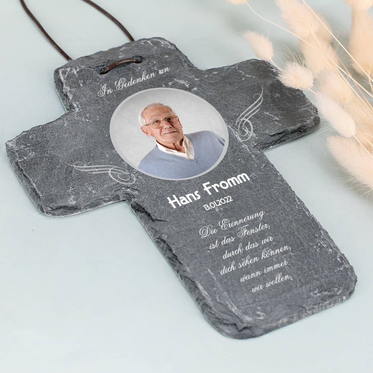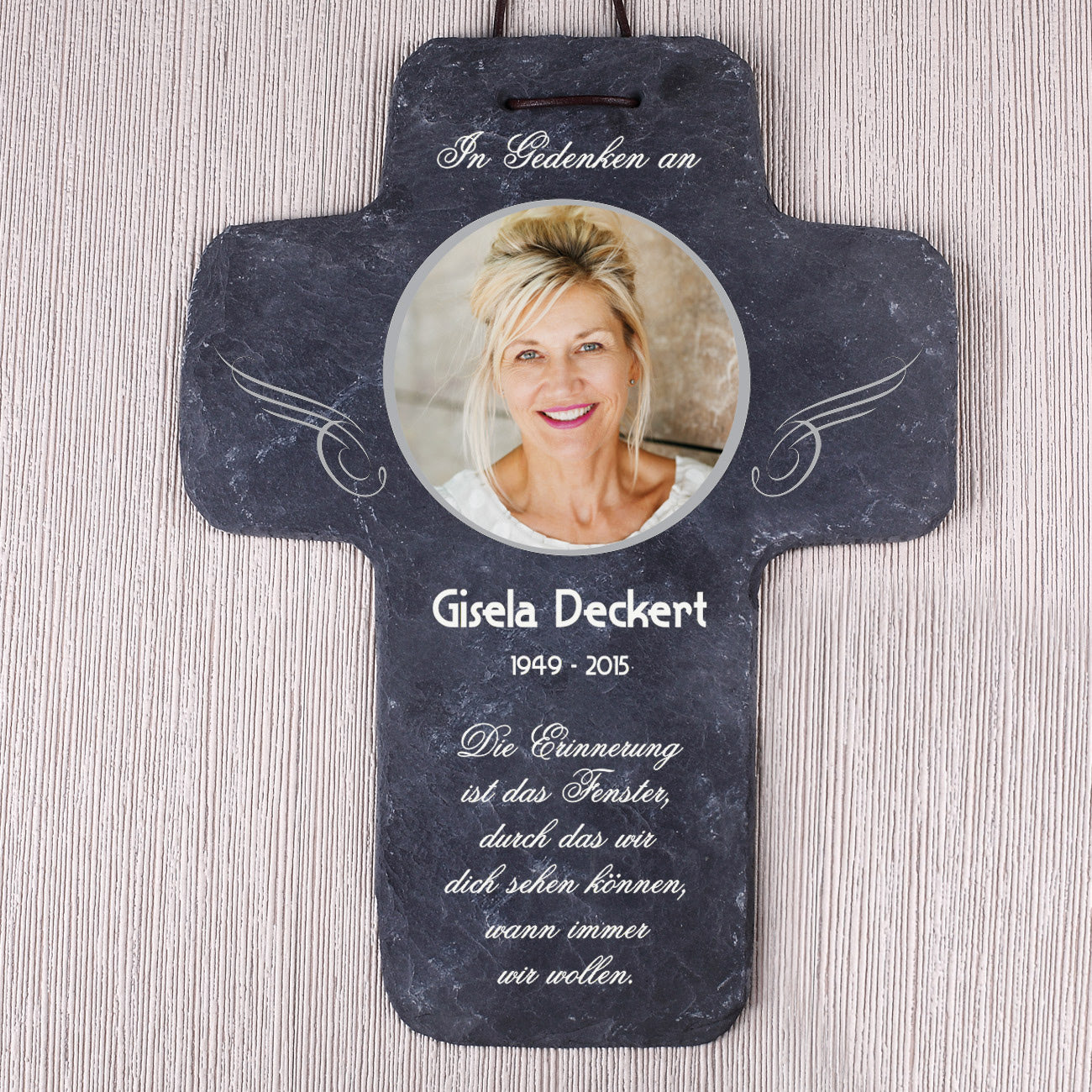 persönliches Foto-Schieferkreuz, 30 x 22 cm - In Gedenken an -