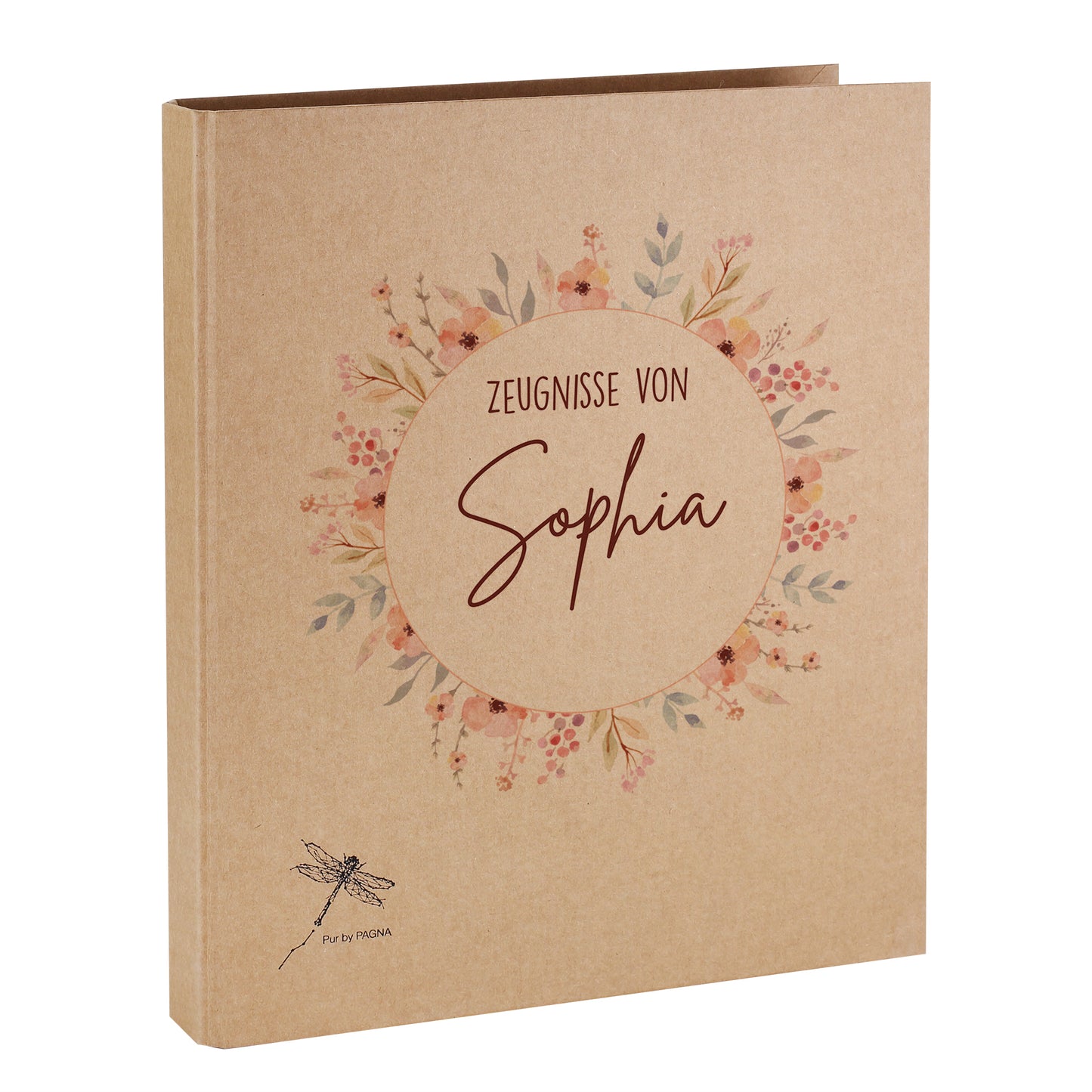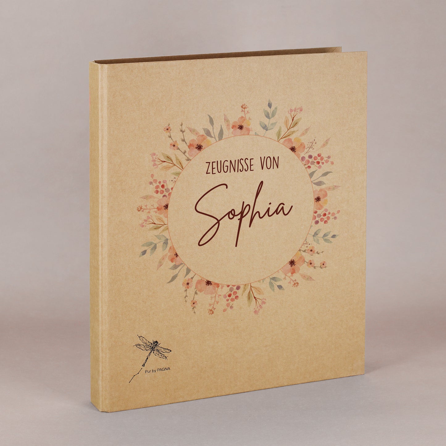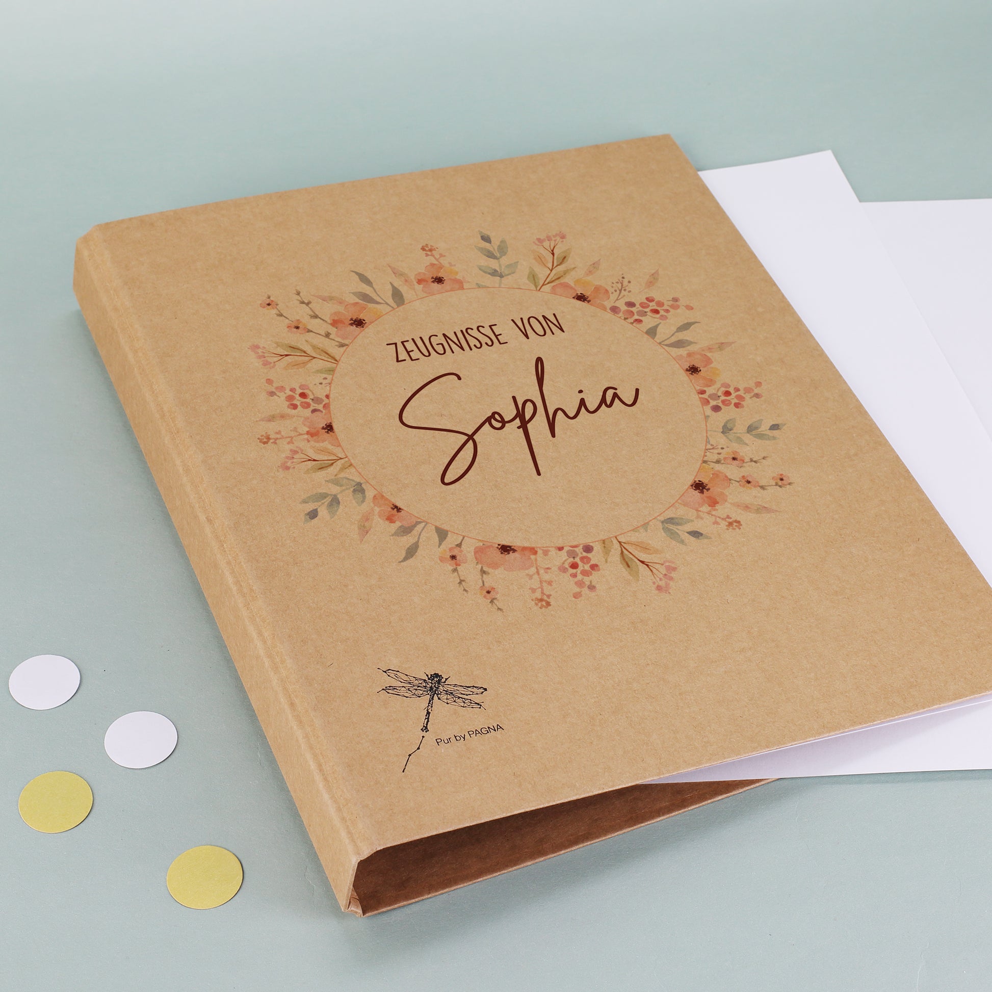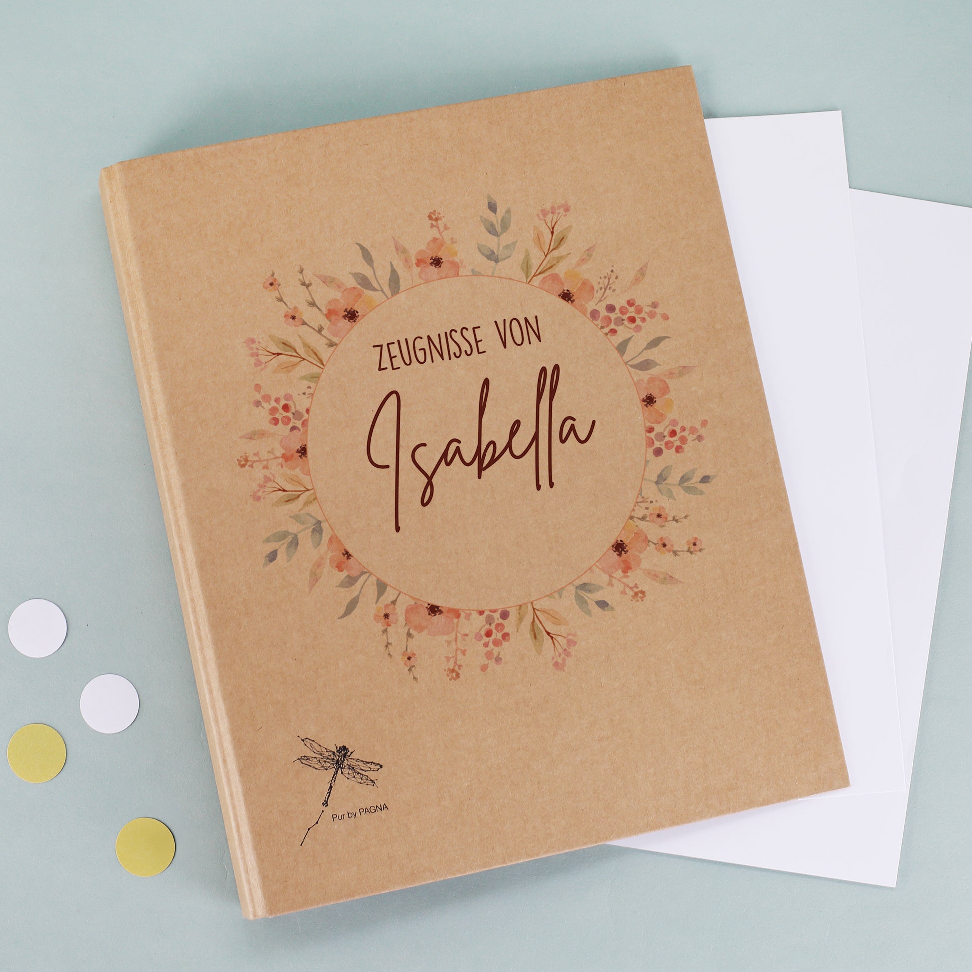 Zeugnismappe mit Blumenkranz & Wunschname – Persönlich, stilvoll & liebevoll gestaltet