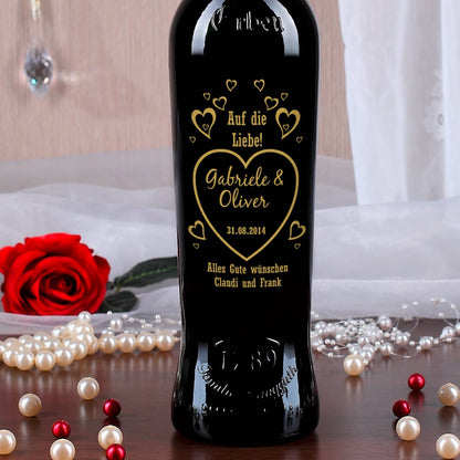 Personalisierte Weinflasche zur Hochzeit mit romantischer Gravur