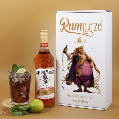 Humorvolles Rum-Geschenkset mit Rumpunzel-Motiv – personalisiert mit Name & Wunschtext