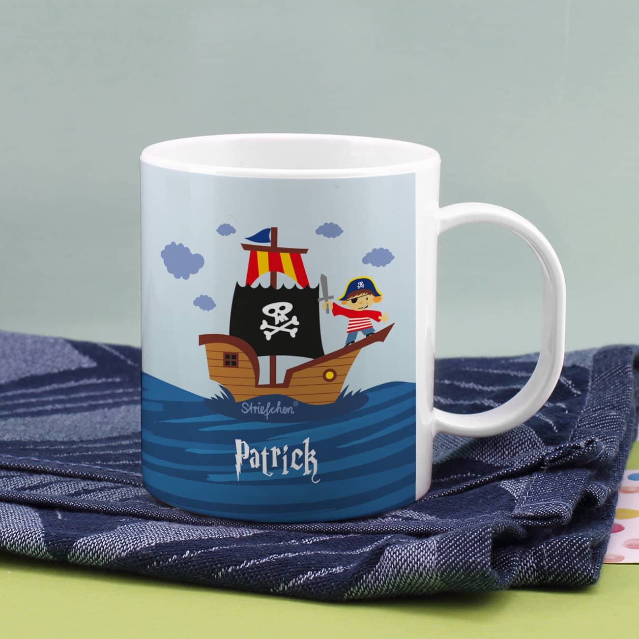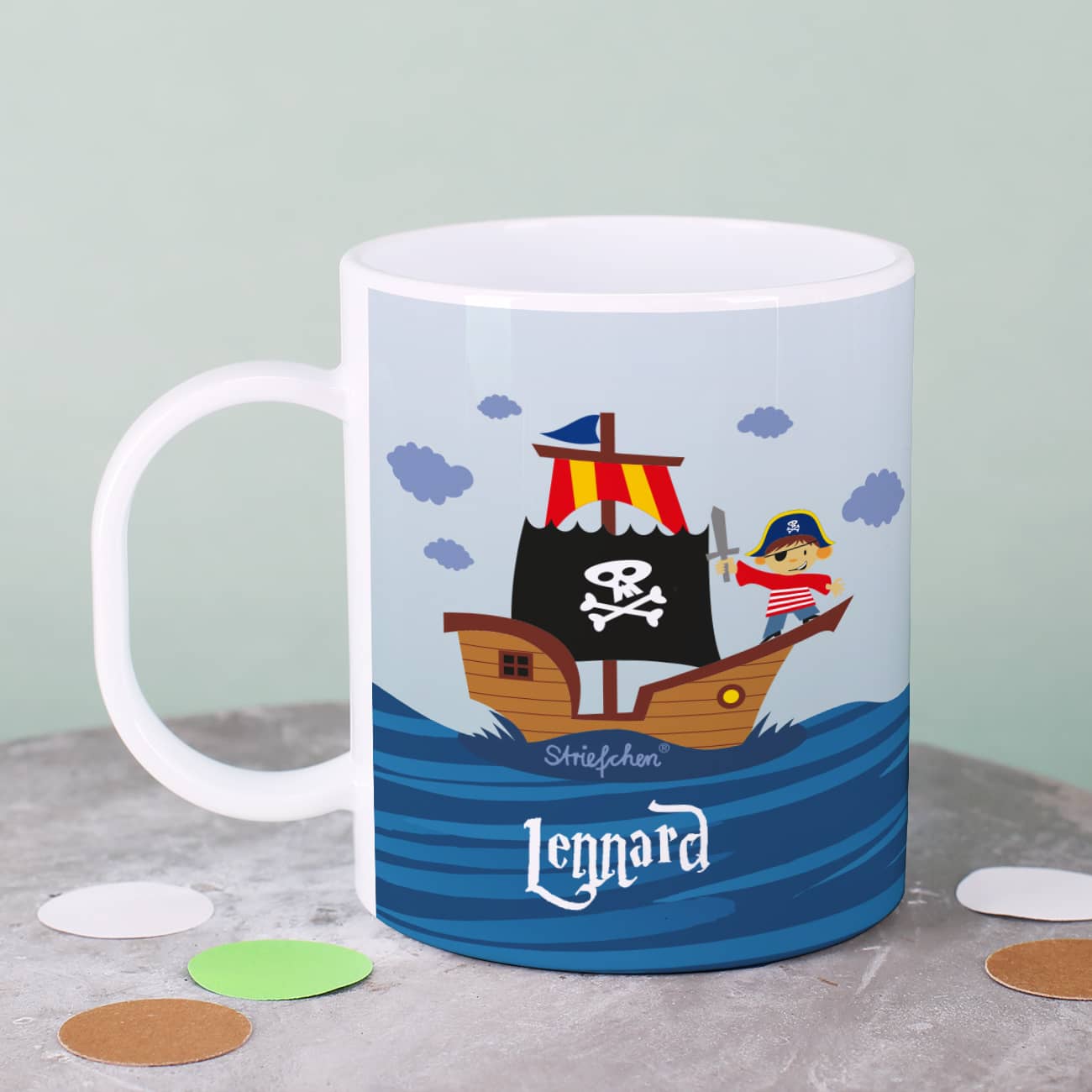 Tasse aus bruchfesten Kunststoff mit Piratenschiff und Name