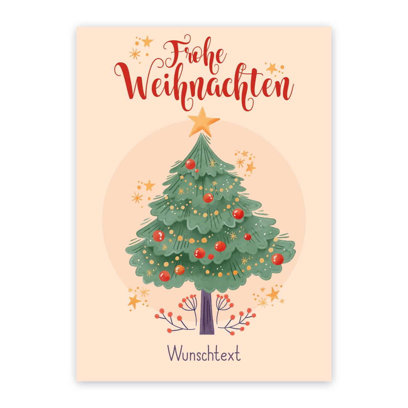 Postkarte - Frohe Weihnachten - mit Weihnachtsbaum, Sternen und Wunschtext