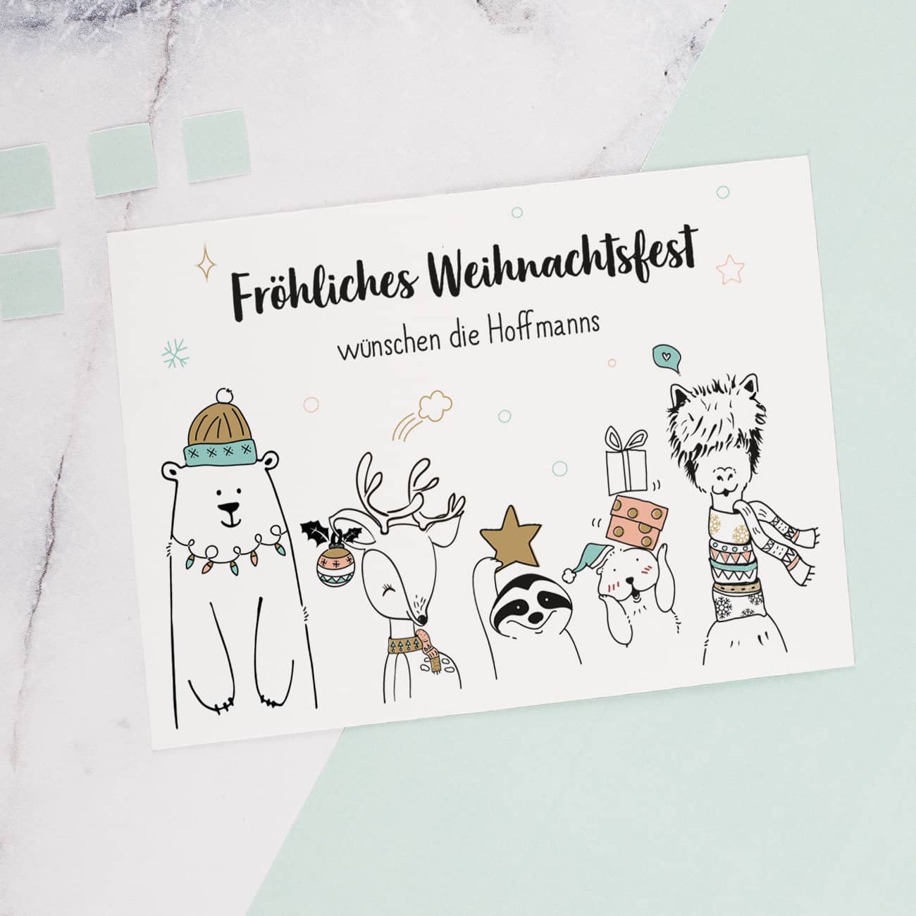 Personalisierte Postkarte zu Weihnachten mit Wintertieren
