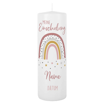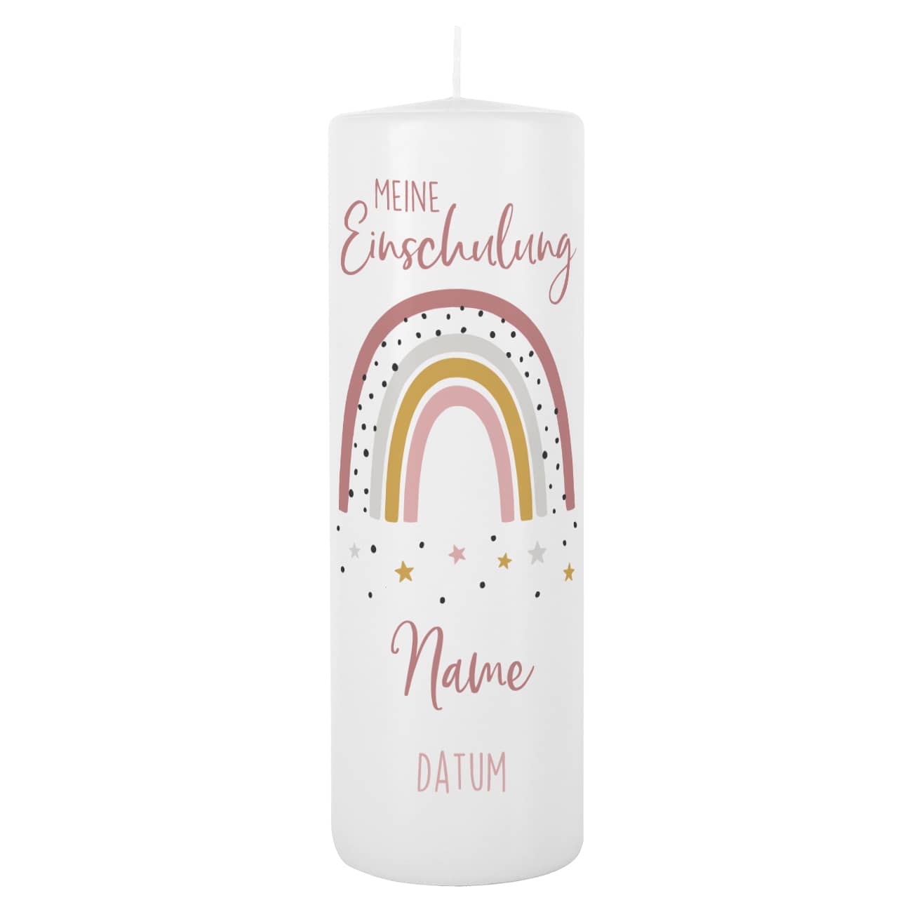 Kerze zur Einschulung von Herz & Heim® mit Regenbogen Motiv für Mädchen