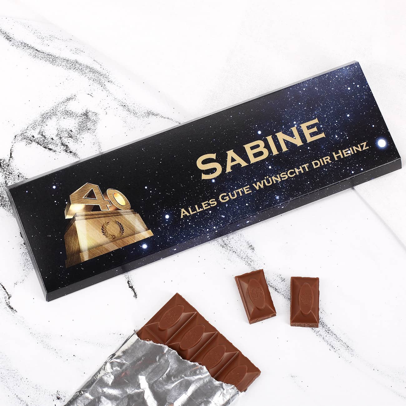 Mit dieser personalisierten Schokolade als Geschenk zum 40. Geburtstag symbolisieren Sie, wer an diesem Tag der Star im Mittelpunkt ist!