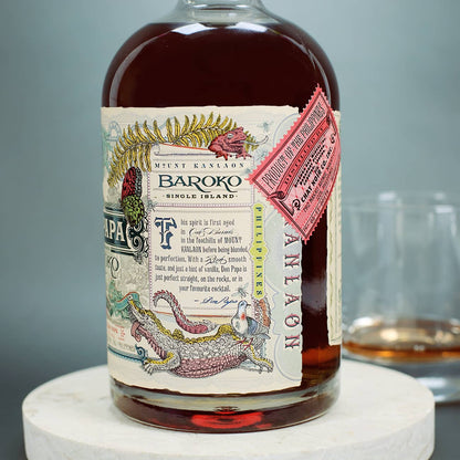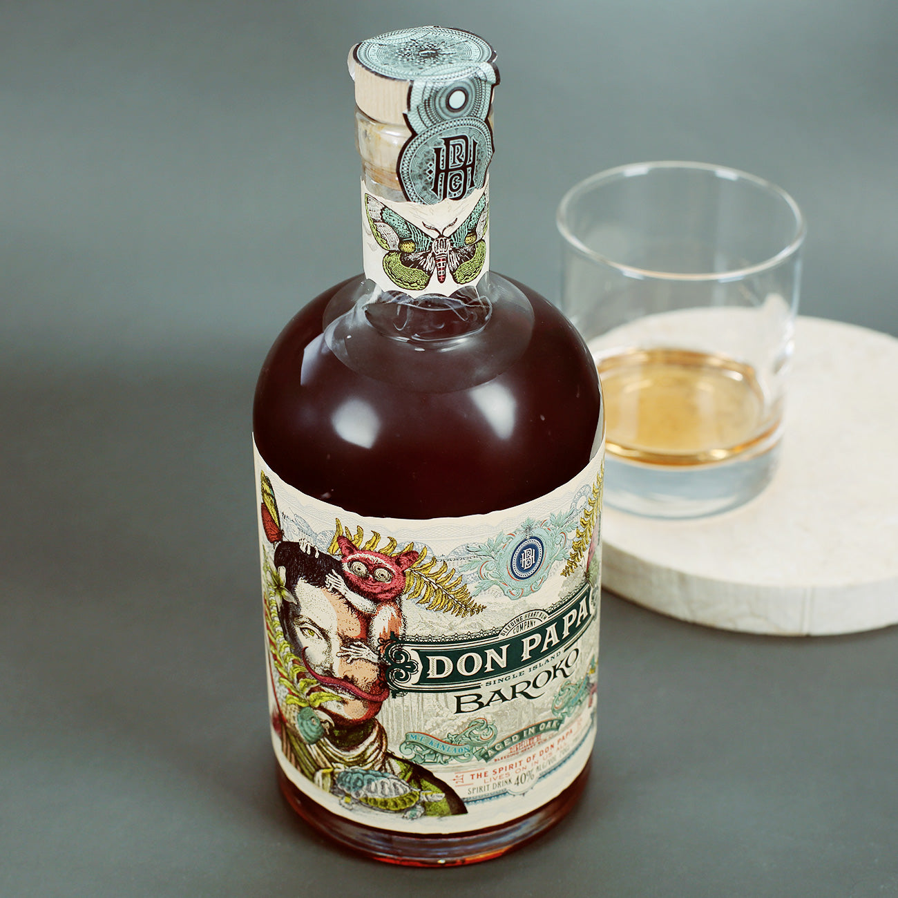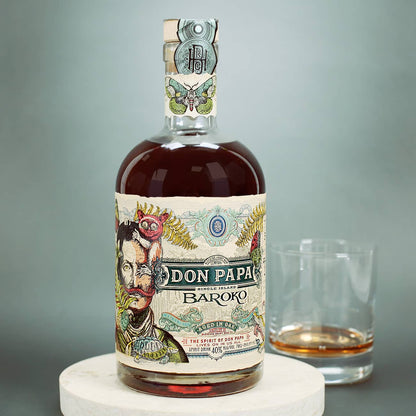 Don Papa Baroko, mit einem Alkoholgehalt von 40% in einer 700 ml Flasche, ist ein Genuss für wahre Feinschmecker. Die ansprechende Flaschengestaltung und seine Vielseitigkeit – sei es pur, auf Eis oder in Cocktails – machen ihn zu einem erstklassigen Geschenk für anspruchsvolle Genießer. Überreichen Sie den Rum als Geburtstagsgeschenk, Vatertagsgeschenk, Weihnachtsgeschenk oder zu einem anderen Anlass, an dem Sie ein edles alkoholisches Geschenk benötigen!