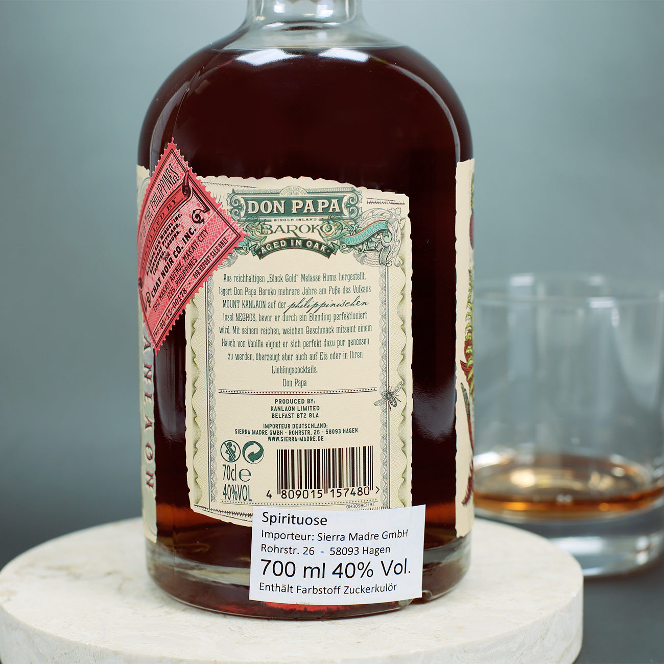 Rum Don Papa Baroko mit 40% vol. in der 700 ml Flasche